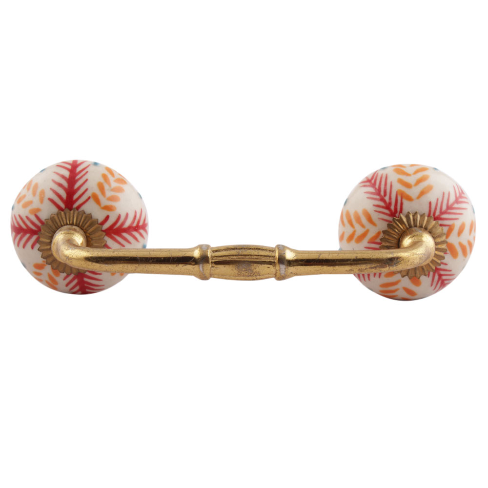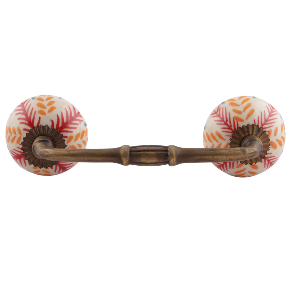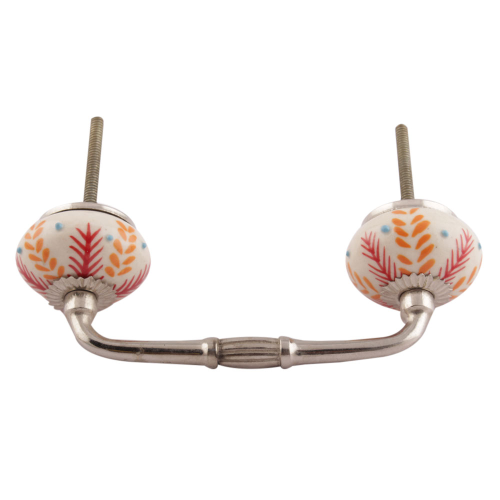 Red Leaf Flora Ceramic Bridge Handles. Ideal for Drawer, Dresser, Cabinet, Wardrobe, Cupboard and Almirah etc.