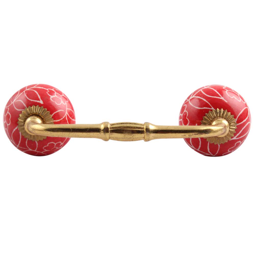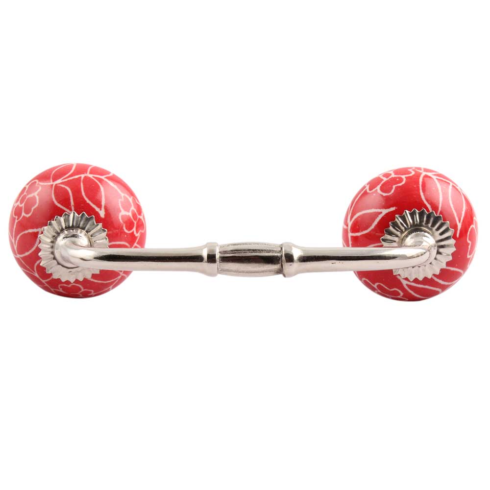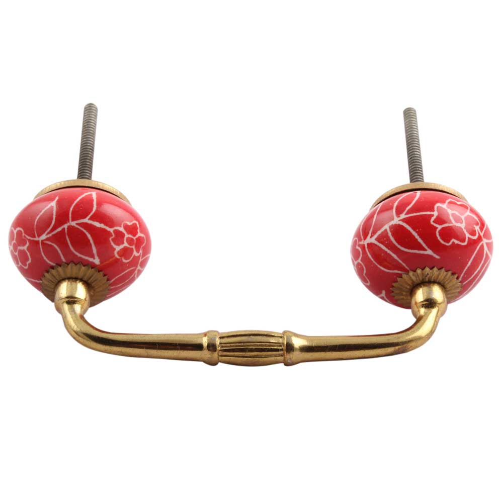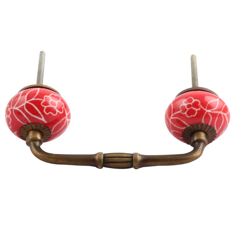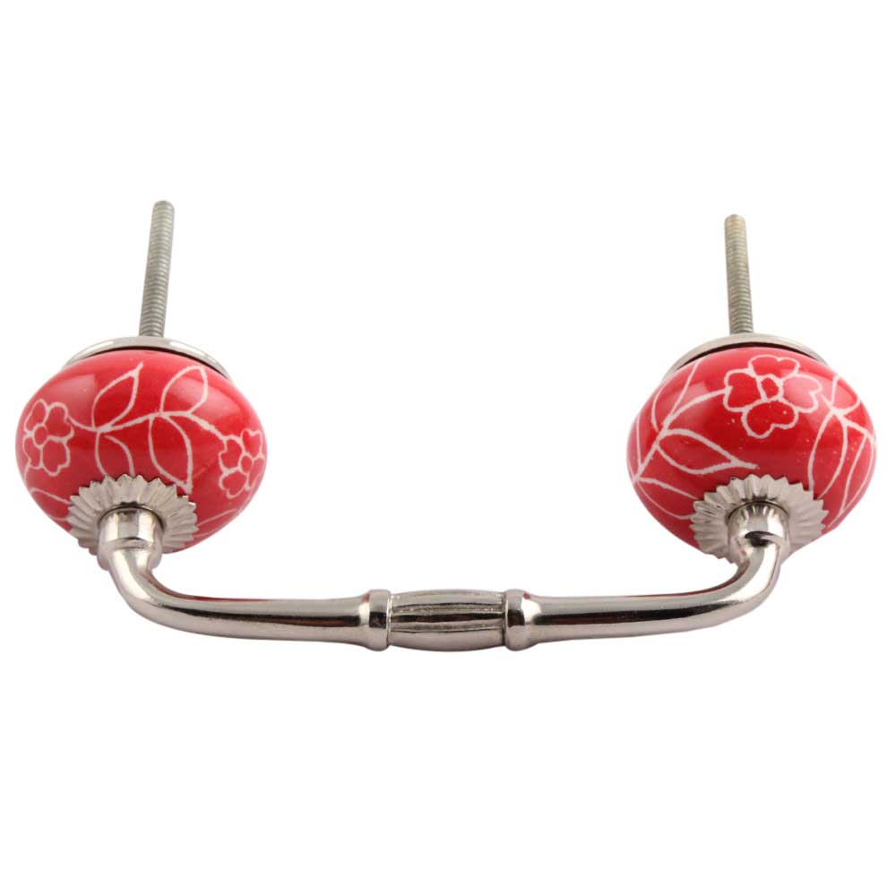 Red Leaf Floral Ceramic Bridge Handle. Ideal for Drawer, Dresser, Cabinet, Wardrobe, Cupboard and Almirah.