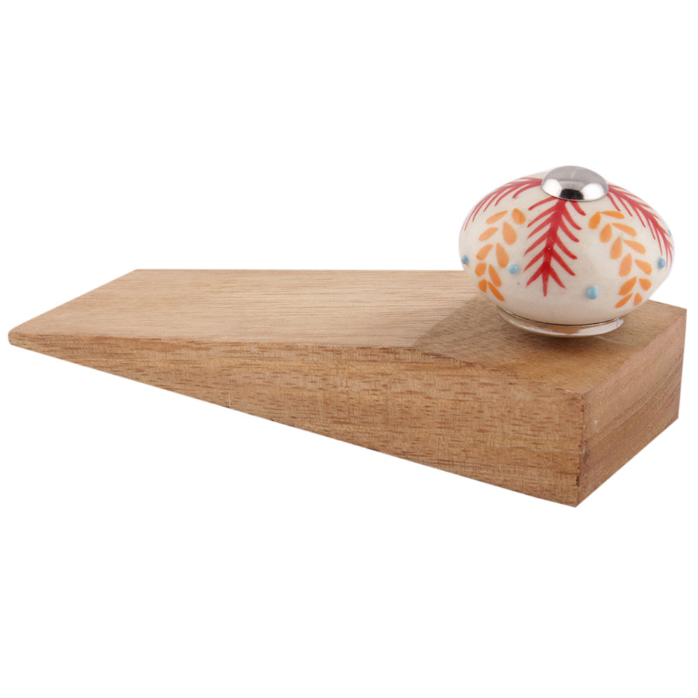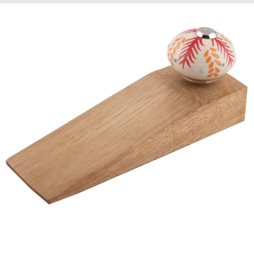 Handmade Ceramic and Wooden Door Stopper.Wooden Door Stopper with a Ceramic Knob to Carry it Easily. This Wooden Door Stopper has Glue Dots under it to Ensure that it does not Slip. It is Handmade by the Craftsmen of India and this Innovative Door Stopper won't Disappoint You.