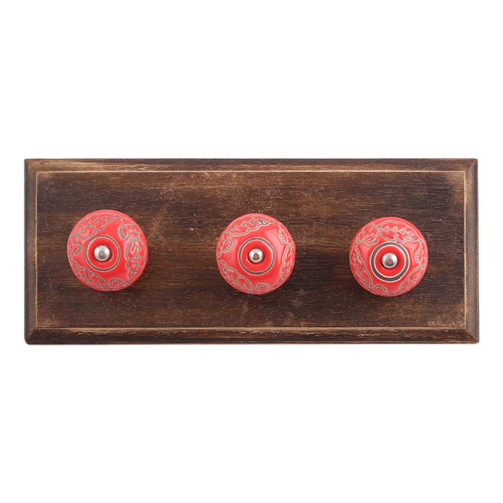 Red Leaf Flower Etched Ceramic Wooden Hook. A Perfect Complement to the Soft Tone of the Wood are these White Traditional Hat &Amp; Coat Hook Made of Genuine Porcelain and Brass. It can be use to Hang Jewellery, Leashes, Towels, Scarves, Light Weight Sweaters, Caps Etc.