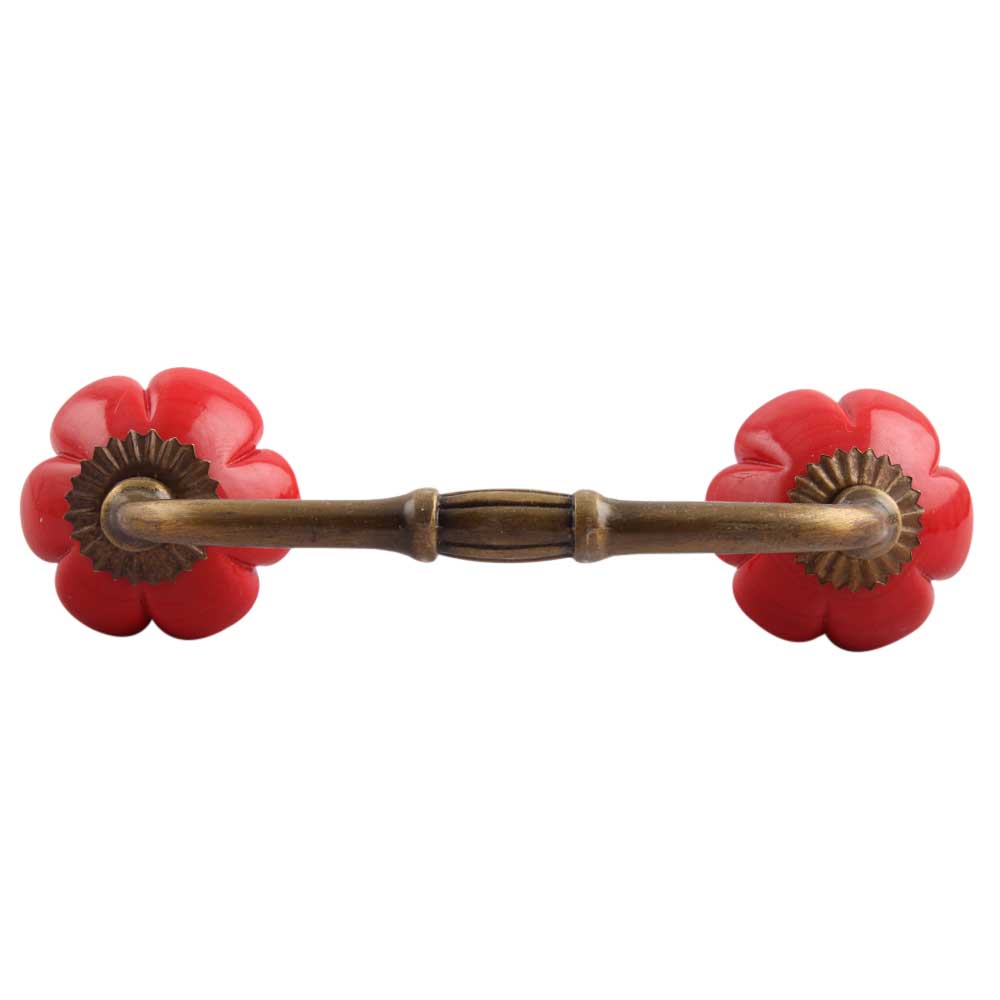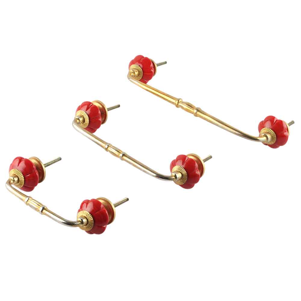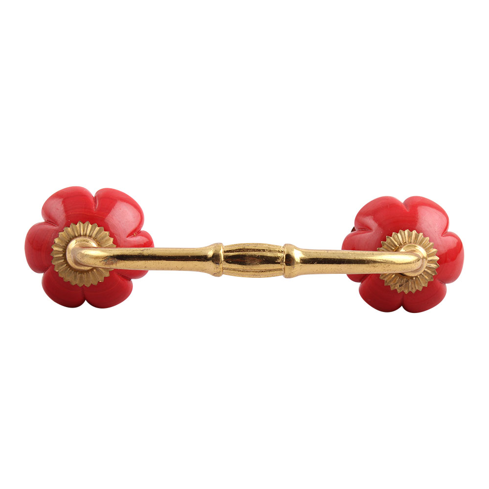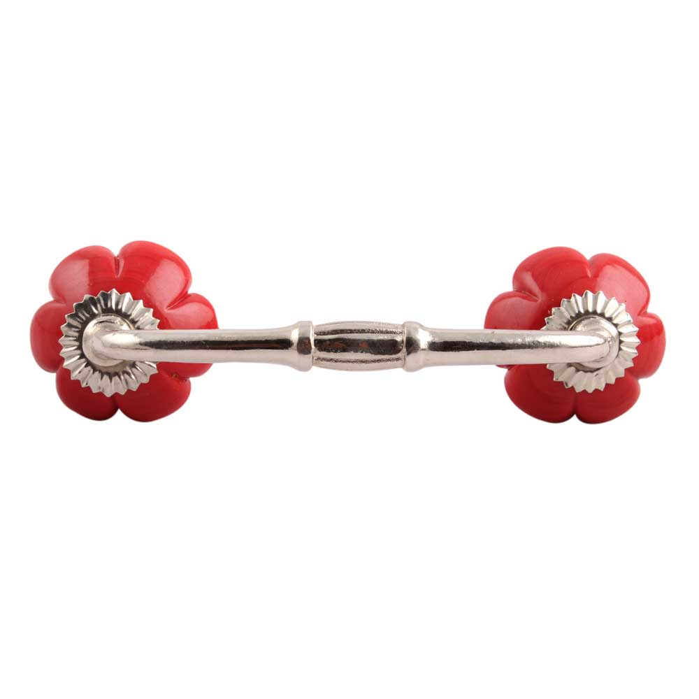 Red Melon Glass Bridge Handle. Ideal for Drawer, Dresser, Cabinet, Wardrobe, Cupboard and Almirah.