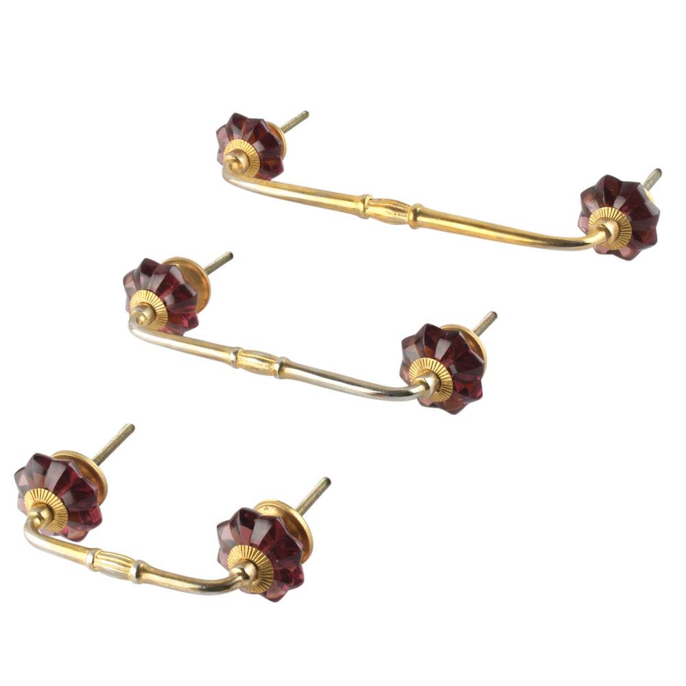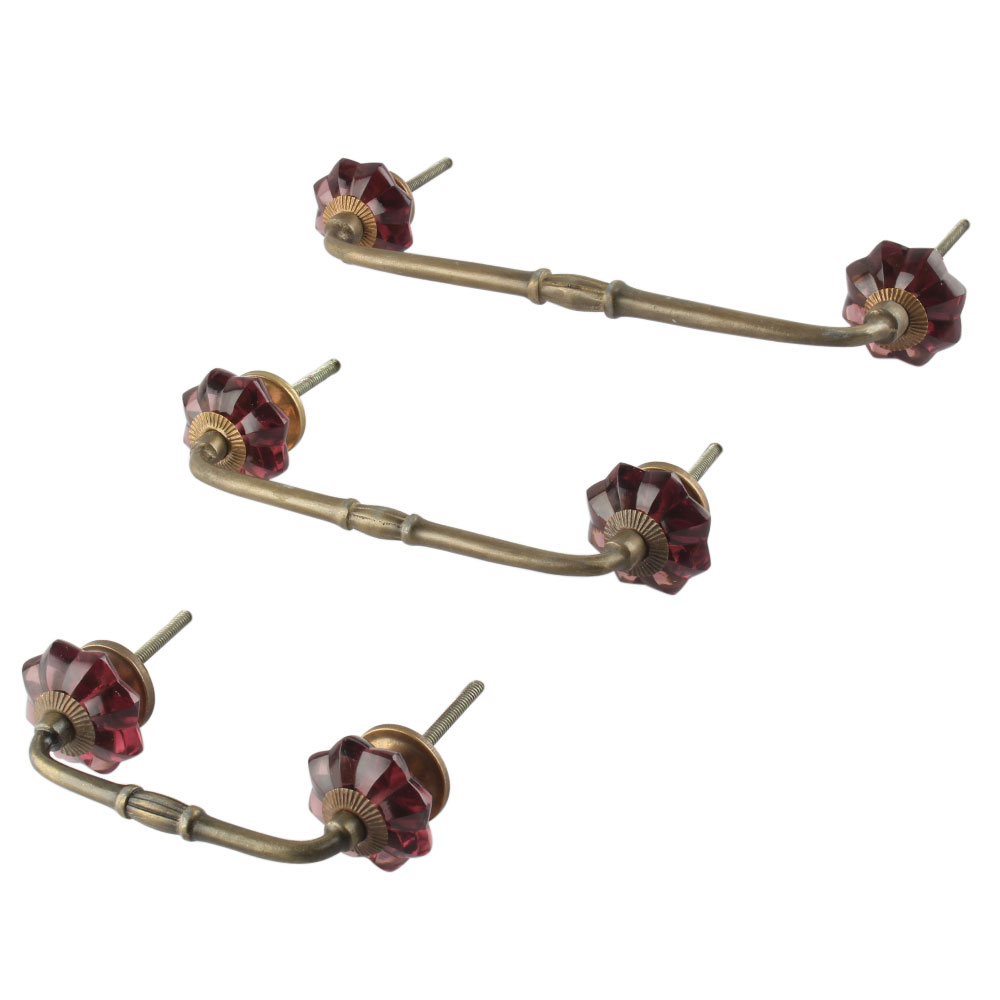 Red Melon Glass Bridge Handle. Ideal for Drawer, Dresser, Cabinet, Wardrobe, Cupboard and Almirah.