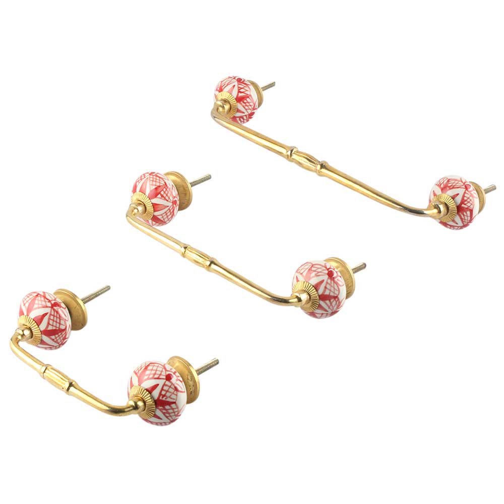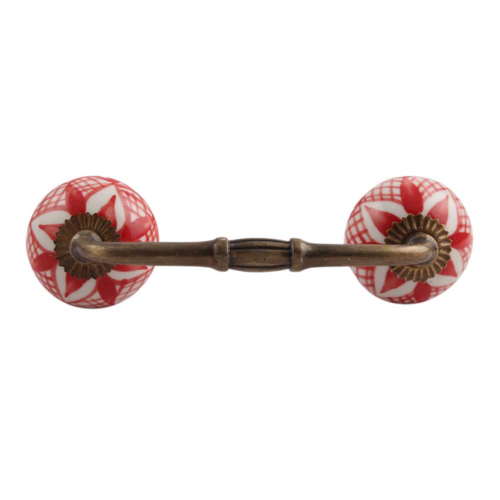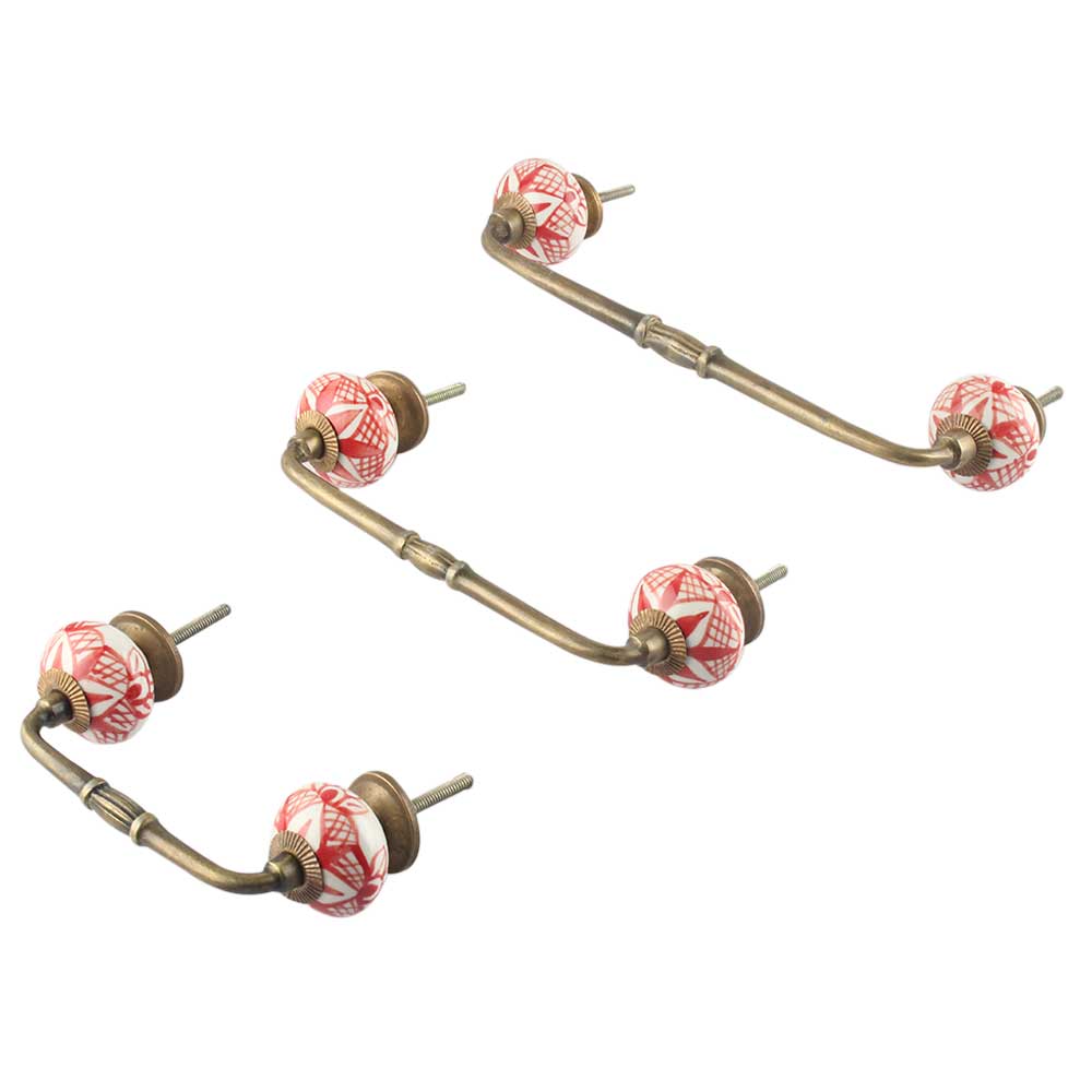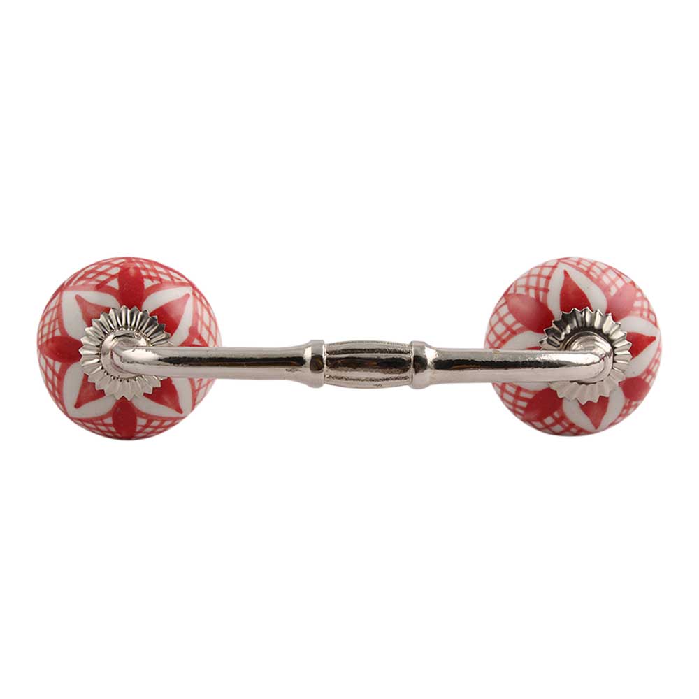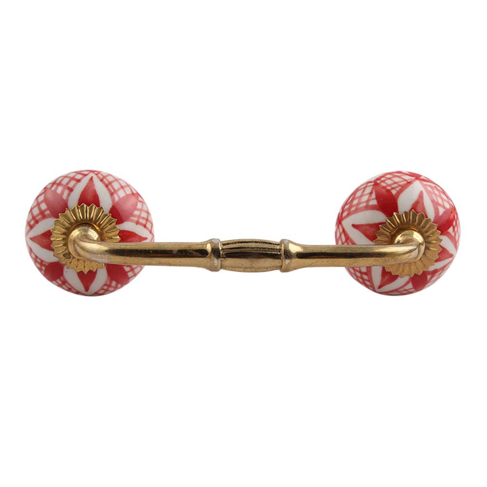 Red Net Ceramic Bridge Handle. Ideal for Drawer, Dresser, Cabinet, Wardrobe, Cupboard and Almirah.
