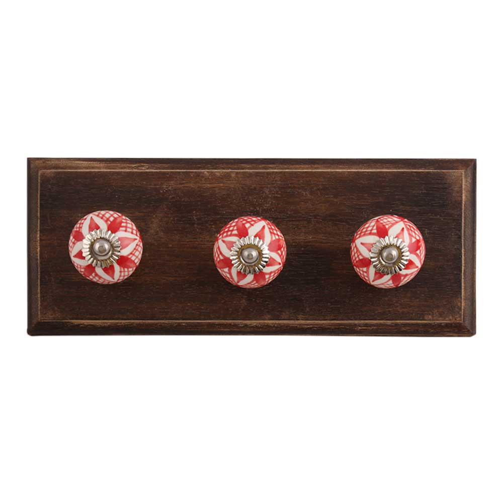 Red Net Ceramic Wooden Hook. A Perfect Complement to the Soft Tone of the Wood are these White Traditional Hat & Coat Hook Made of Genuine Porcelain and Brass. It can be use to Hang Jewellery, Leashes, Towels, Scarves, Light Weight Sweaters, Caps Etc.