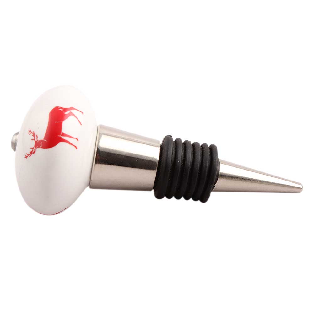 Red Standing Rein Deer Pattern Ceramic Wine Stopper.zinc alloy wine bottle stopper.