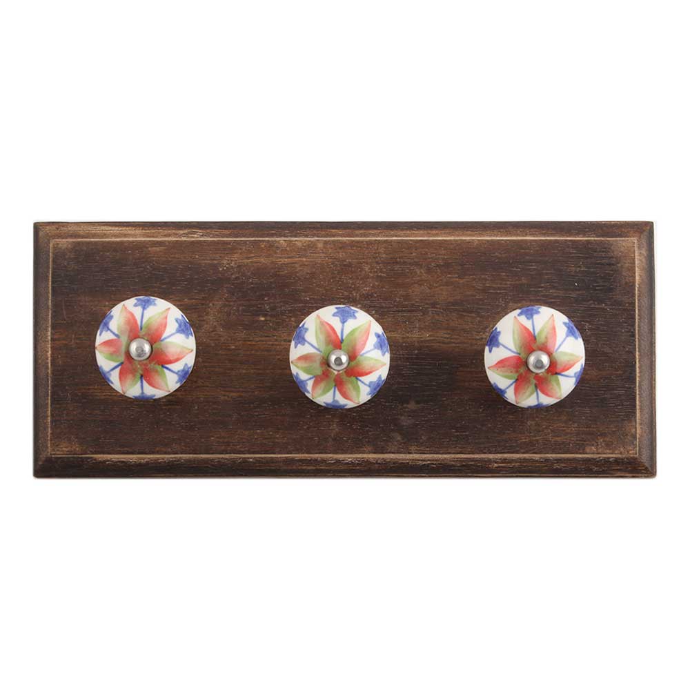 Red Star Ceramic Wooden Hook. A Perfect Complement to the Soft Tone of the Wood are these White Traditional Hat & Coat Hook Made of Genuine Porcelain and Brass. It can be use to Hang Jewellery, Leashes, Towels, Scarves, Light Weight Sweaters, Caps Etc.