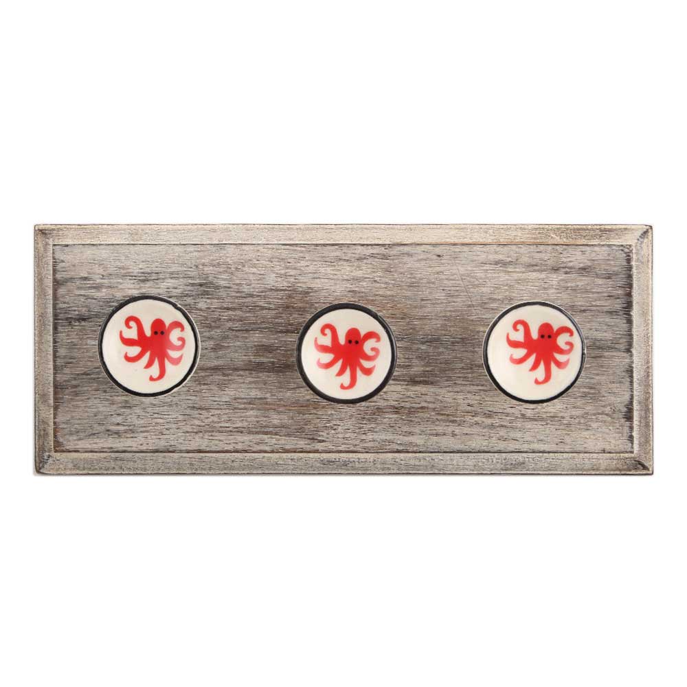 Red Star Fish Flat Ceramic Wooden Hook. A Perfect Complement to the Soft Tone of the Wood are these White Traditional Hat & Coat Hook Made of Genuine Porcelain and Brass. It can be use to Hang Jewellery, Leashes, Towels, Scarves, Light Weight Sweaters, Caps Etc.