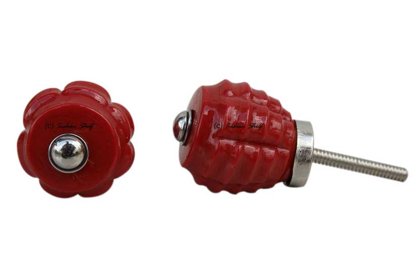 Red Step Glass Knobs. Ideal for Drawer, Dresser, Cabinet, Wardrobe, Cupboard and Almirah.