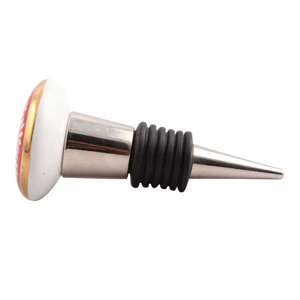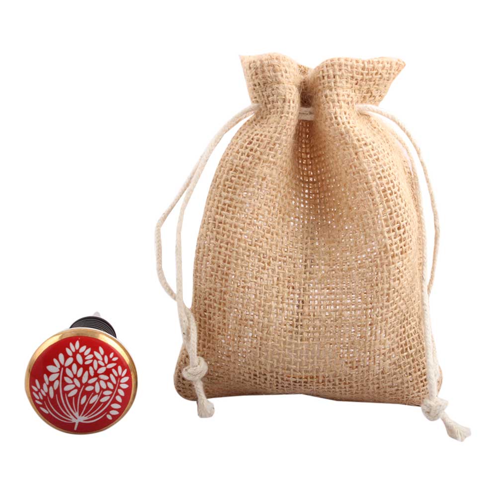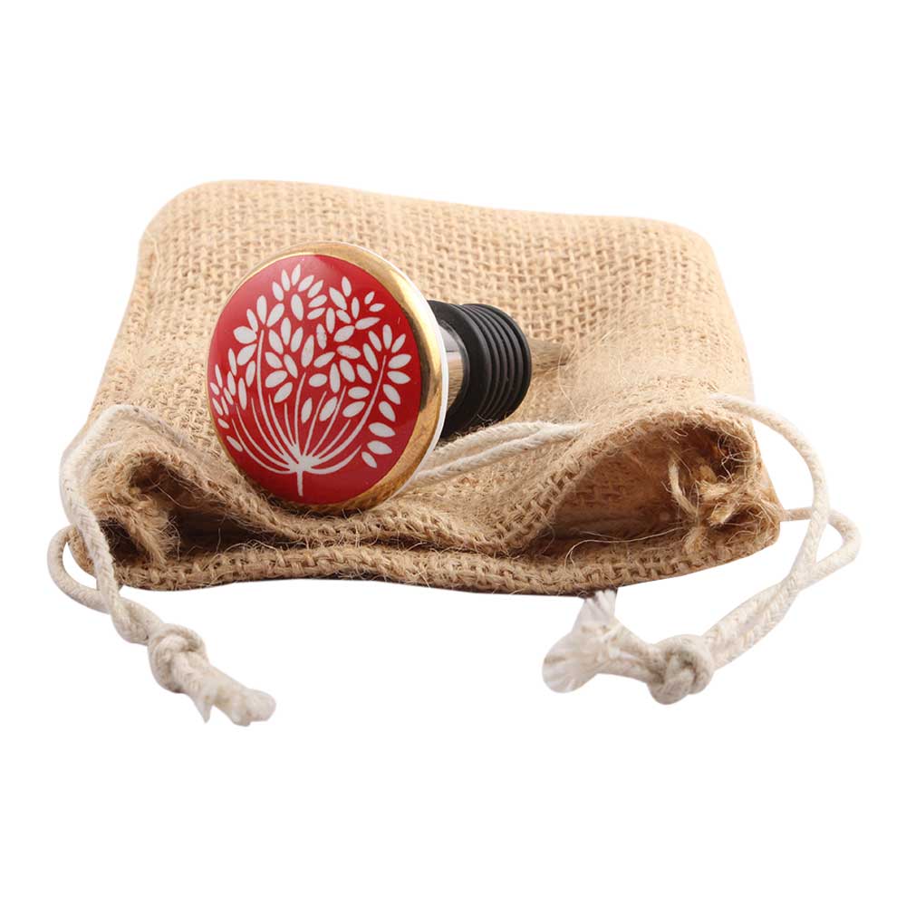 Red Waxflower Flat Ceramic Wine Stopper.zinc alloy wine bottle stopper with attractive Jute Bag Packaging.