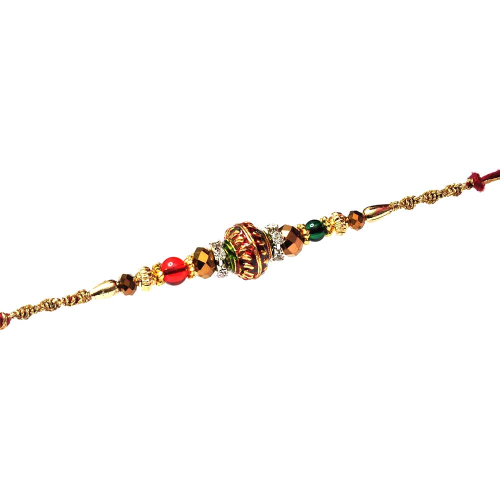 Red-White Meenakari Bead Rakhi