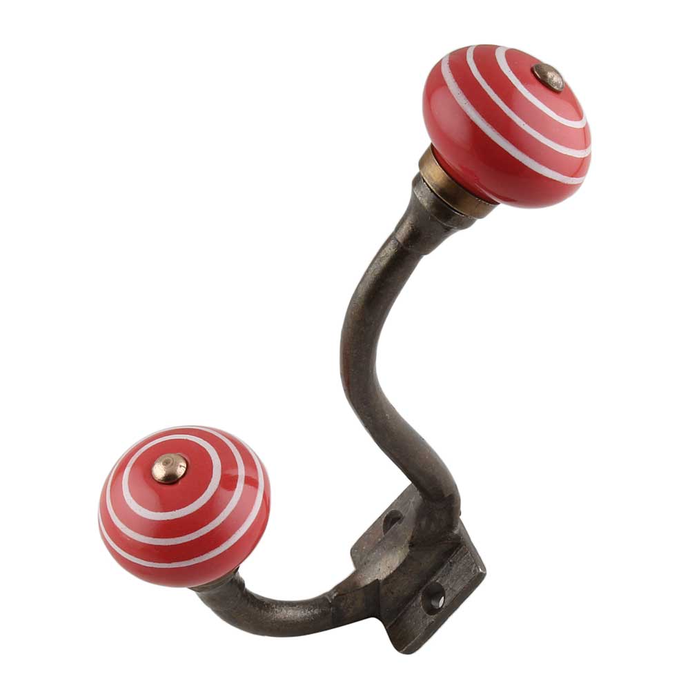 Red White Stripes Ceramic Antique Iron Hook – Single Decorative Wall Hook