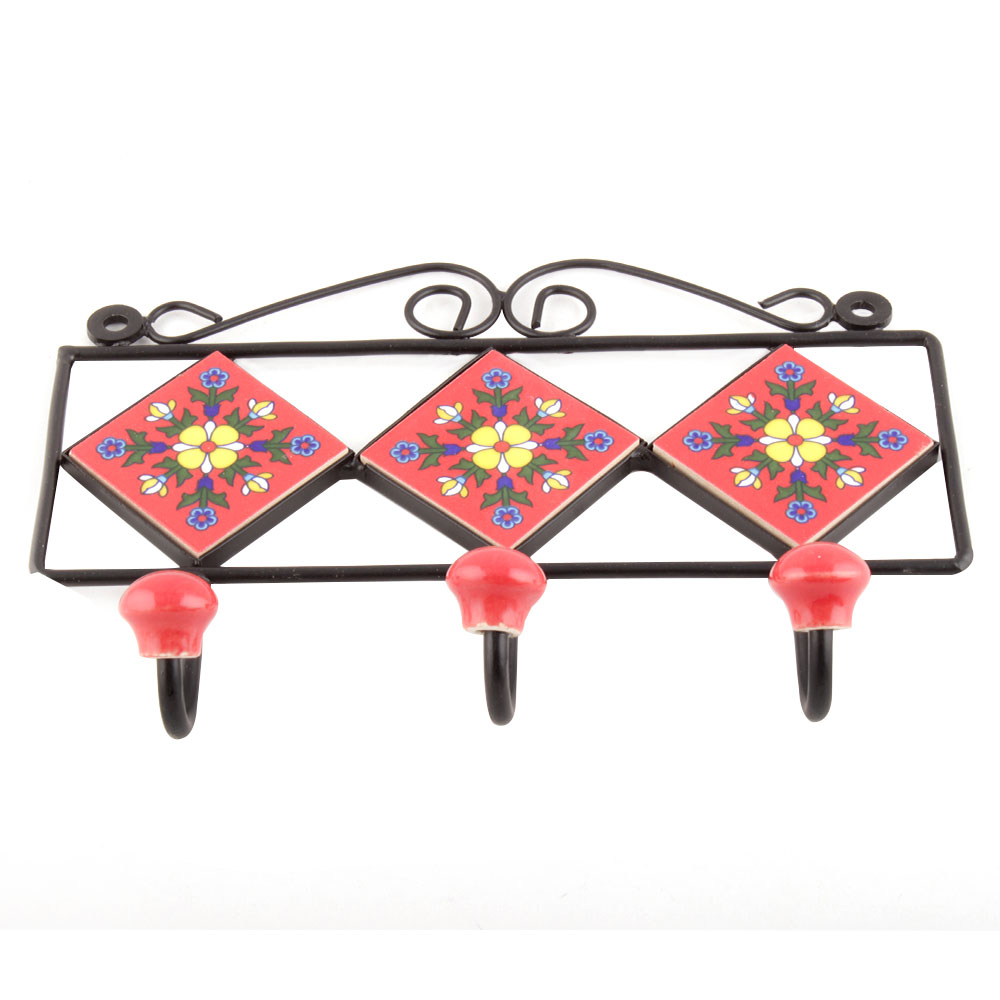 Red Yellow Flower Tiles Hooks.When Put on Wall or Cabinet it is an Art in itself. The Metal Part of this Hook is Black Powder Coated.