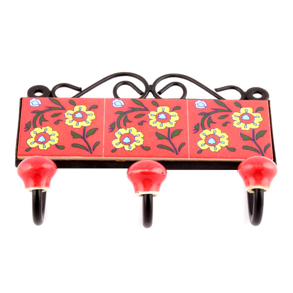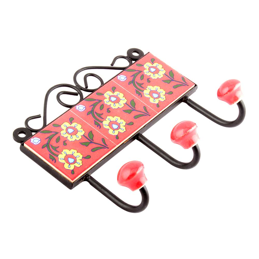Red Yellow Flower Tiles Hooks. WhenPut on Wall or Cabinet it is an Art in itself. The Metal Part of this Hook is Black Powder Coated.