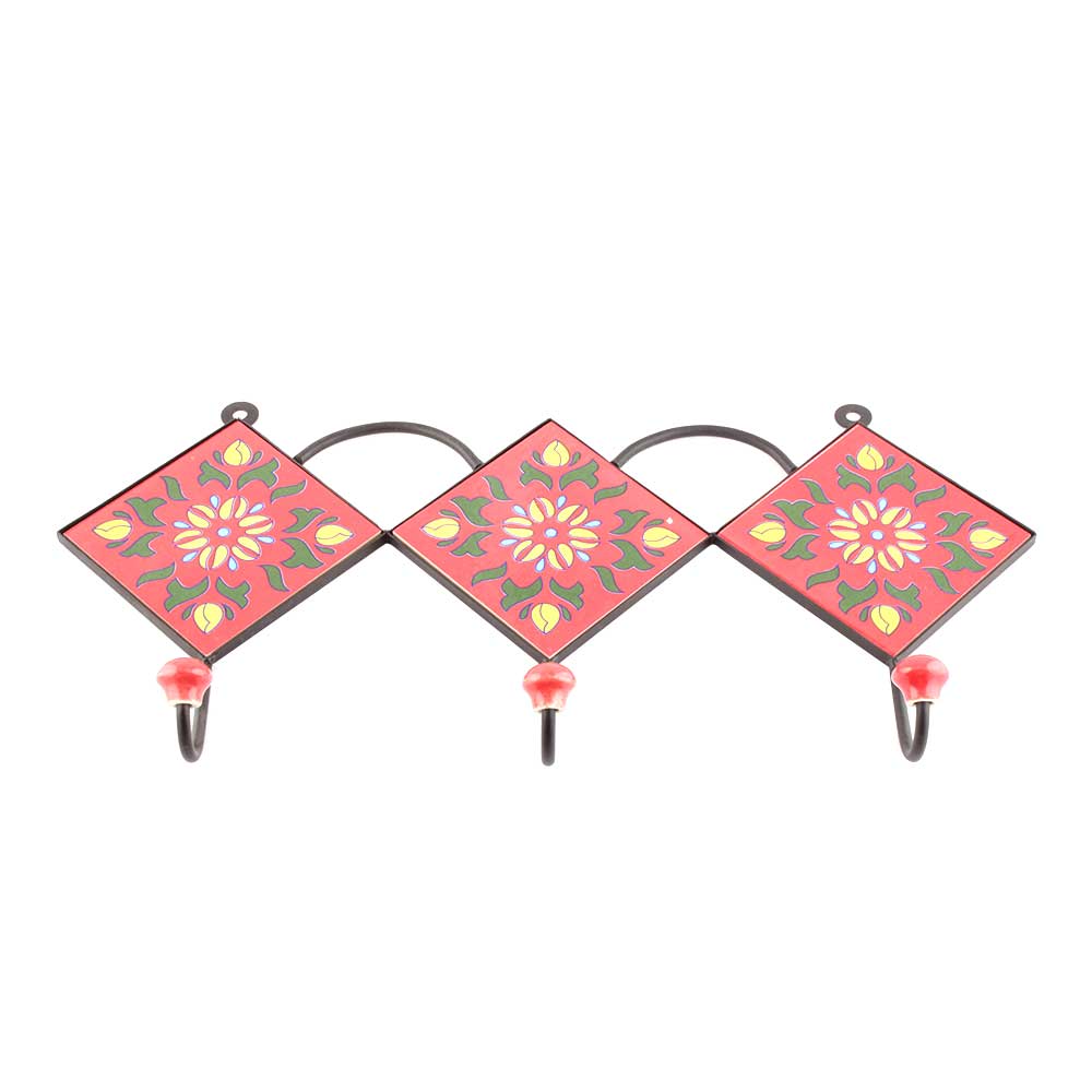 Red Yellow Sunflower Ceramic Tiles Hooks. When Put on Wall or Cabinet it is an Art in itself. The Metal Part of this Hook is Black Powder Coated.