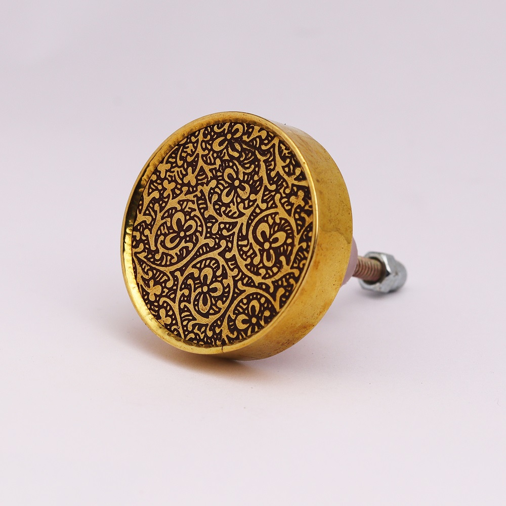 Featuring a polished brass exterior and a smooth wooden center, this decorative knob is crafted to enhance both classic and modern interiors. Its round shape allows it to effortlessly integrate into various decor styles, making it a simple upgrade for your furniture.