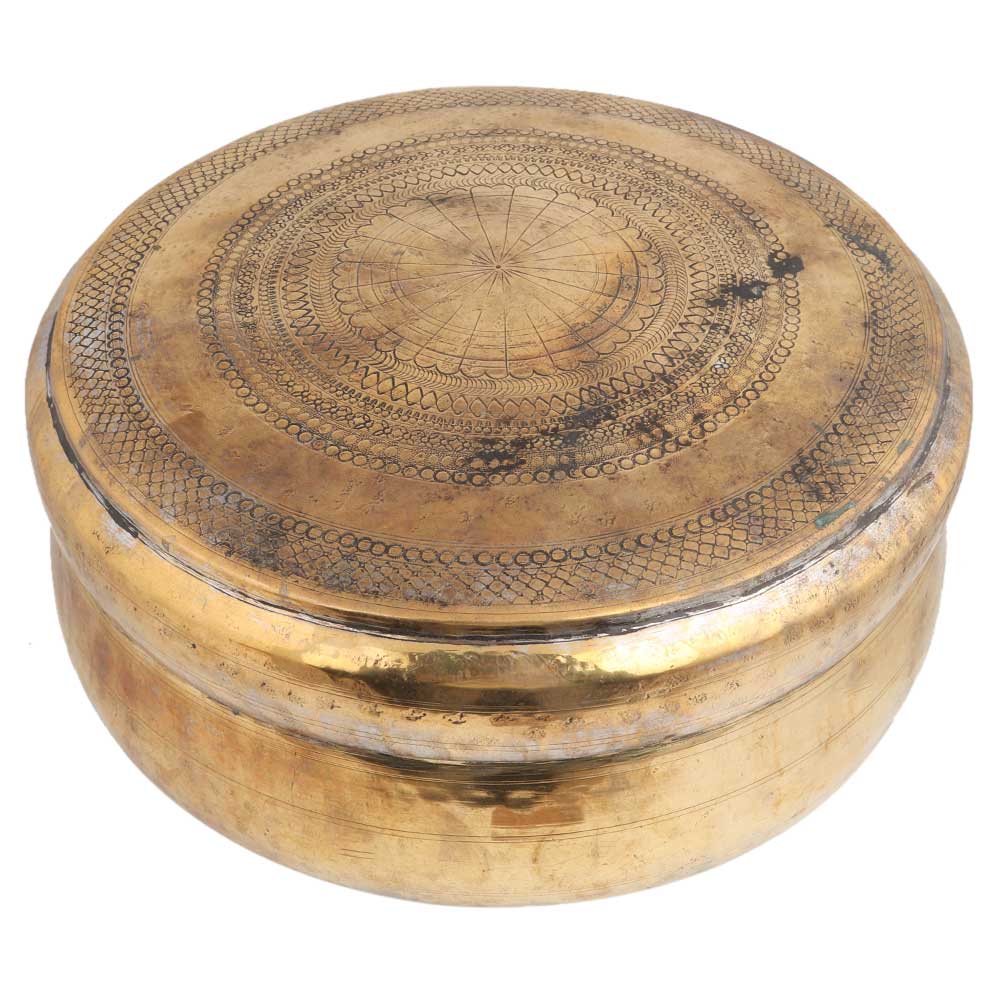 Round Brass Box Engraved Design with removable lid with engraved design made by the expert craftsmen sing traditional methods. Jewelry and trinkets box, Kitchen Essential, Collectible, Table Decor, Chapatti Box.