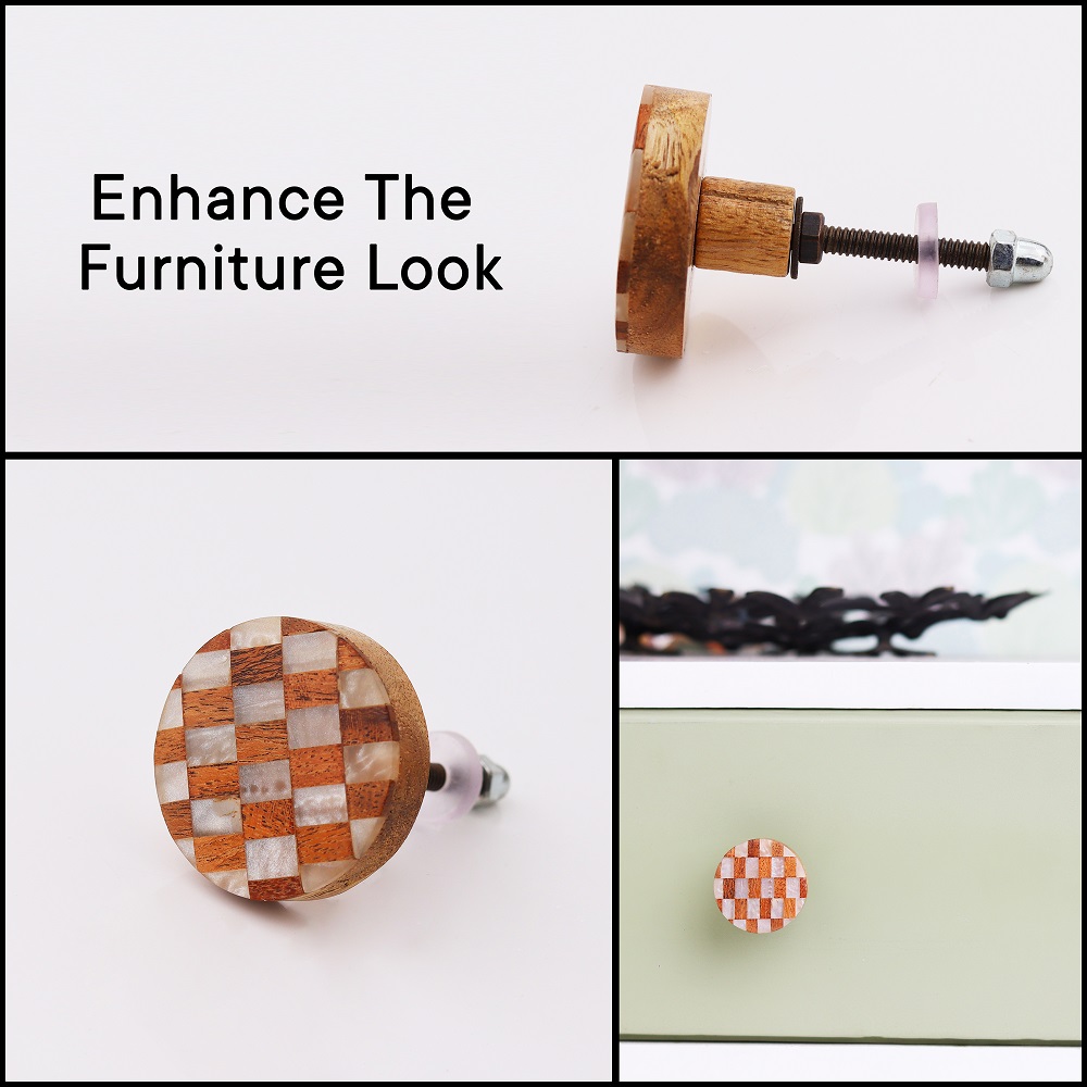 Made from high-quality resin and wood, these cabinet knobs are designed for durability. The smooth, polished surface of the resin checkerboard pattern is expertly affixed to the robust wooden base, ensuring they are both beautiful and long-lasting. This combination of materials offers a sophisticated, modern aesthetic while ensuring the knobs remain strong and durable.