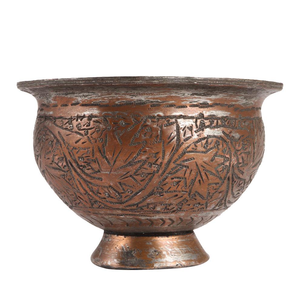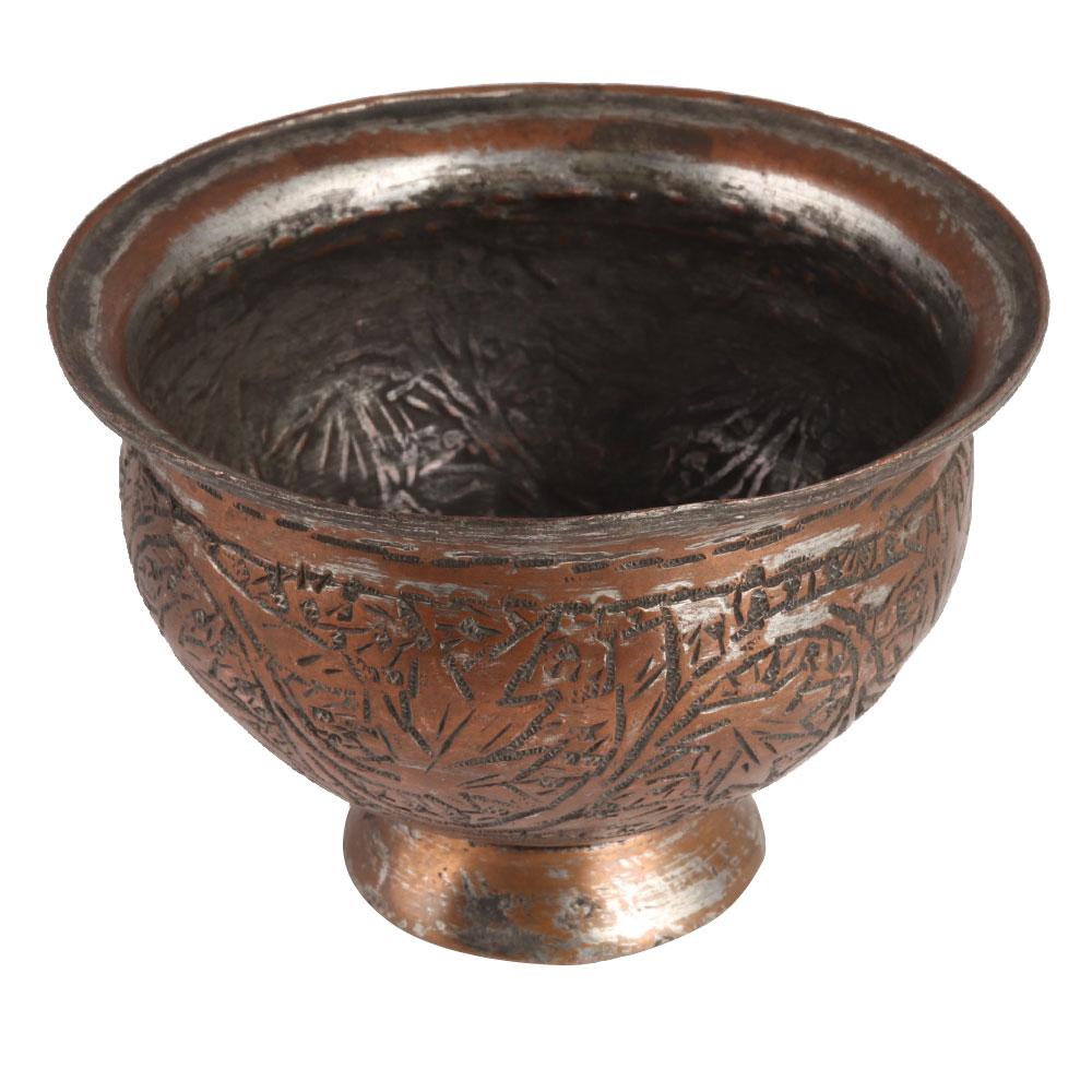 This handcrafted copper cup or bowl with decorative caving work is ideal for home, restaurant, and club decoration, or as a Festival, Christmas, or house warming party gift.