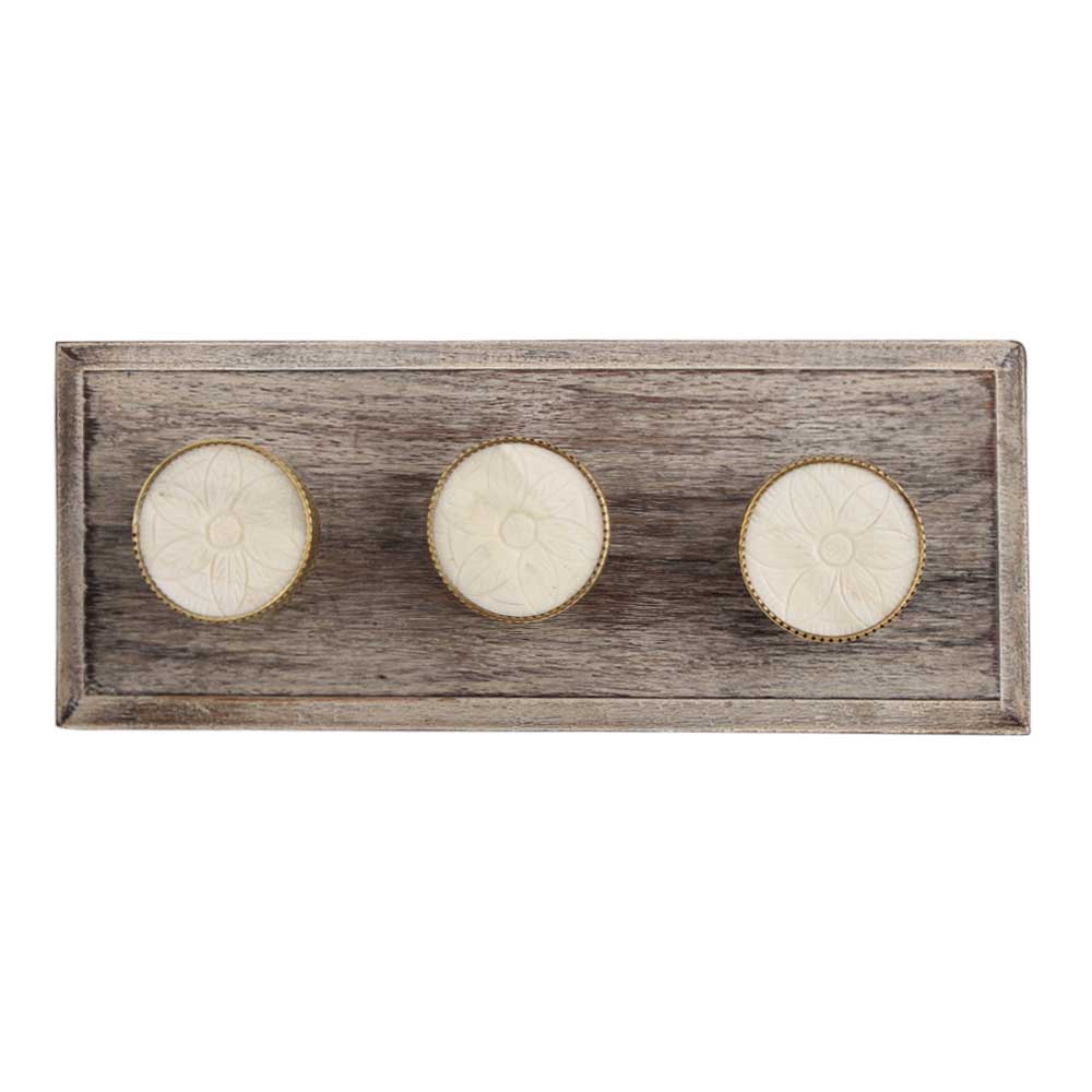 Round Cream Flower Metal and Bone Wooden Hook. A Perfect Complement to the Soft Tone of the Wood are these White Traditional Hat & Coat Hook Made of Genuine Porcelain and Brass. It can be use to Hang Jewellery, Leashes, Towels, Scarves, Light Weight Sweaters, Caps Etc.
