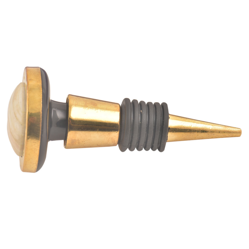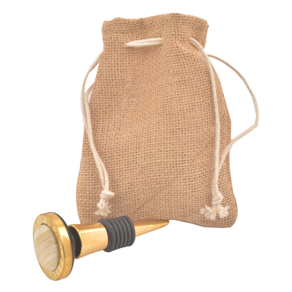 Round Cream Metal And Bone Wine Stopper. Zinc Alloy Wine Bottle Stopper with Attractive Jute Bag Packaging.