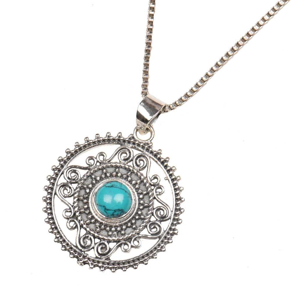 Round Engraved Blue Stone Sterling Silver Pendant is suitable for a wedding , anniversary birthday party etc. It is also the perfect gift for your family and friends on the occasion Diwali, Christmas or new year party. It can also be worn to a small family gathering.