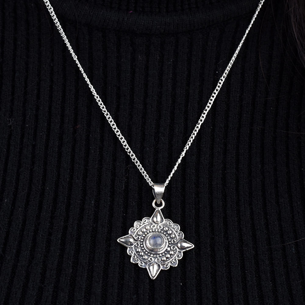 Round Engraved Grey Stone 92.5 Sterling Silver Pendant can be paired with casual, formal or office wear. It can be gifted to friend and relatives on anniversaries, weddings, engagements, birthdays, Formal functions or those special evening where less is more.