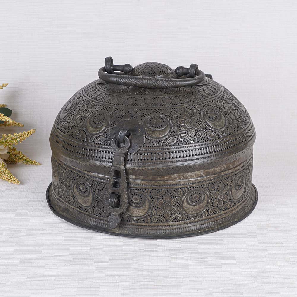 Handcrafted by skilled Indian artisans, this exquisite brass round jewelry box is a true masterpiece. Adorned with intricate engravings, its black finish lends it an alluring charm that captivates the beholder. The box features a convenient handle on the top, allowing for effortless transportation and practical usage for storing jewelry and precious stones. Its versatility extends beyond function, as it can also enhance the decor of your home or office with its antique allure. Designed with meticulous attention to detail, this best jewelry box is further embellished with a secure latch, ensuring the safety of your cherished valuables. Its timeless beauty and craftsmanship make it a perfect candidate for display in museums or exhibitions, attracting discerning customers seeking elegance and refinement. Additionally, this brass jewelry box serves as an ideal gift for loved ones during special or festive occasions, embodying the essence of sophistication and grace. Discover the epitome of style and utility with this captivating jewelry box designed specifically for girls.