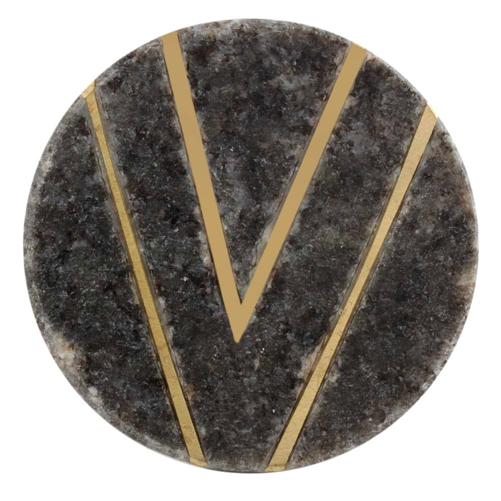 The standout feature of this knob is its distinctive V-shaped gold accent, adding an eye-catching element to its round grey stone base. This perfect fusion of textures and materials creates a balanced and refined aesthetic that complements both contemporary and traditional décor.