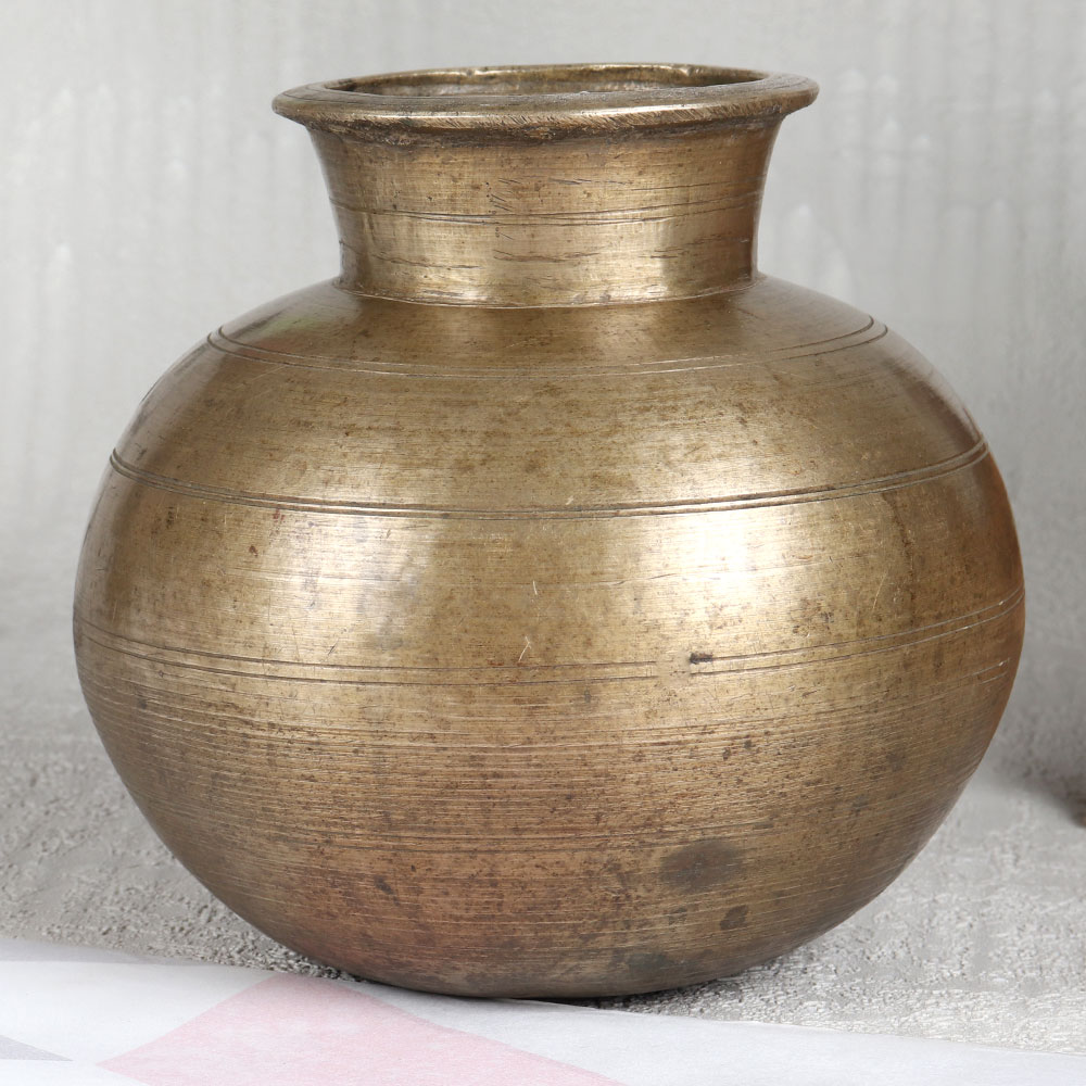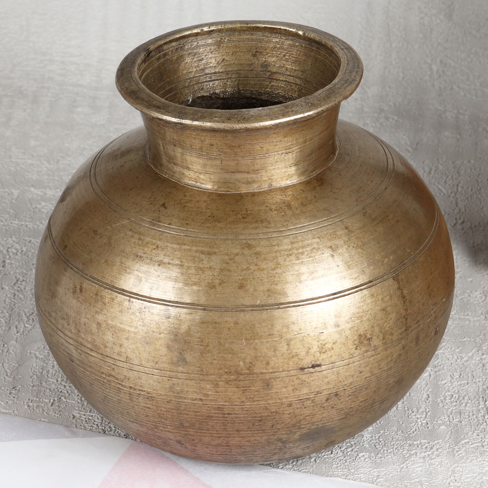 Immerse yourself in the rich heritage and timeless elegance of this exquisite vintage brass holy water pot that is a true masterpiece in antique golden finish. Crafted by highly skilled and experienced Indian artisans from the heart of the Himalayas, this piece is a testament to their dedication and craftsmanship. Made from high-quality brass, the pot exudes a sense of vintage charm that complements any setting, be it your home, office, restaurant, hotel, cafe, or shop. Its versatility knows no bounds, making it perfect for both decoration and practical use as a flower pot. This sacred artefact also plays a pivotal role in rituals, havan ceremonies, and prayers, enhancing the spiritual ambiance with its aesthetic appeal. Its presence can effortlessly elevate the sanctity of any space. For collectors, this brass holy water pot is a rare find, adding a touch of history and culture to your vintage collection. It also serves as a captivating exhibit at cultural exhibitions. Moreover, as a thoughtful gift, it carries the essence of tradition and spirituality, making it an ideal choice for special, festive, or auspicious occasions. Share the blessings and beauty of this vintage brass holy water pot with your family, friends or relatives, and let it become a cherished part of their lives.