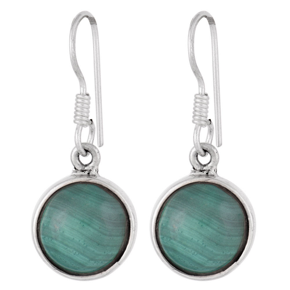 • Round Malachite 92.5 Sterling Silver Earrings