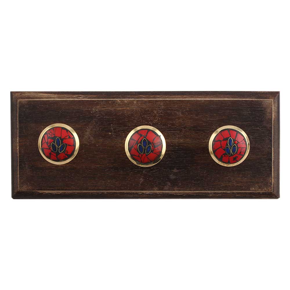 Round Red Stone and Metal Wooden Hook. A Perfect Complement to the Soft Tone of the Wood are these White Traditional Hat & Coat Hook Made of Genuine Porcelain and Brass. It can be use to Hang Jewellery, Leashes, Towels, Scarves, Light Weight Sweaters, Caps Etc.