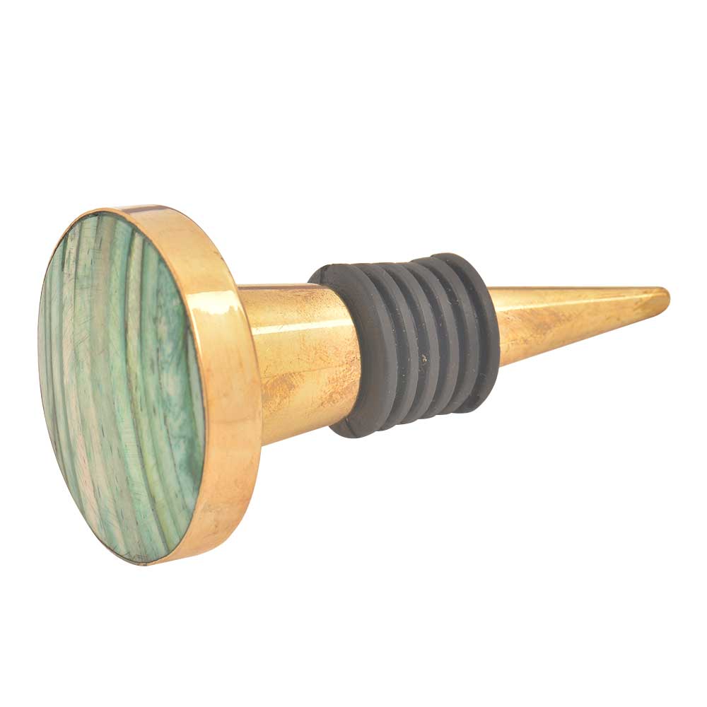 Round Sea Green Metal And Bone Wine Stopper. Zinc Alloy Wine Bottle Stopper with Attractive Jute Bag Packaging.
