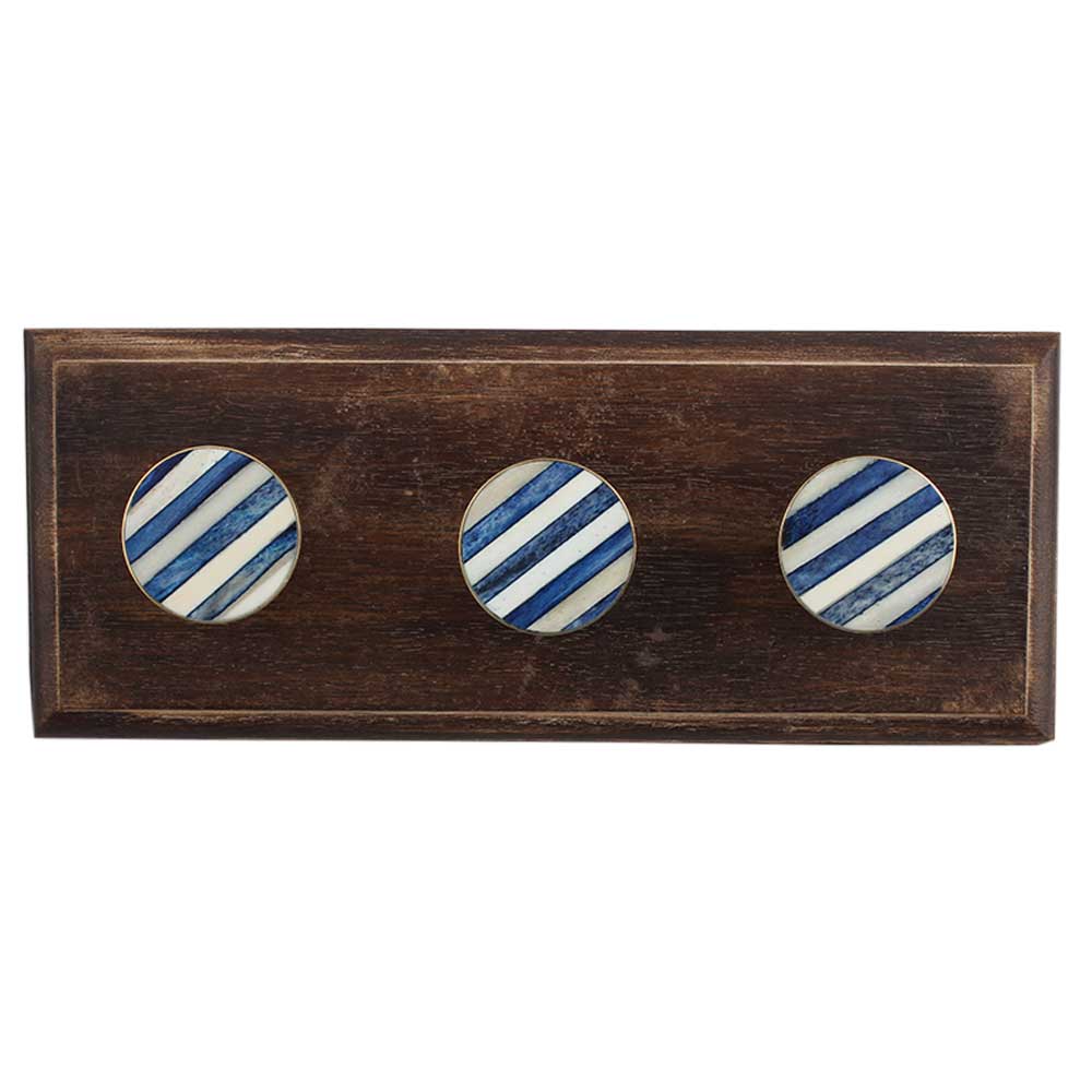 Round Slate Blue White Metal and Bone Wooden Hook . A Perfect Complement to the Soft Tone of the Wood are these White Traditional Hat & Coat Hook Made of Genuine Porcelain and Brass. It can be use to Hang Jewellery, Leashes, Towels, Scarves, Light Weight Sweaters, Caps Etc.