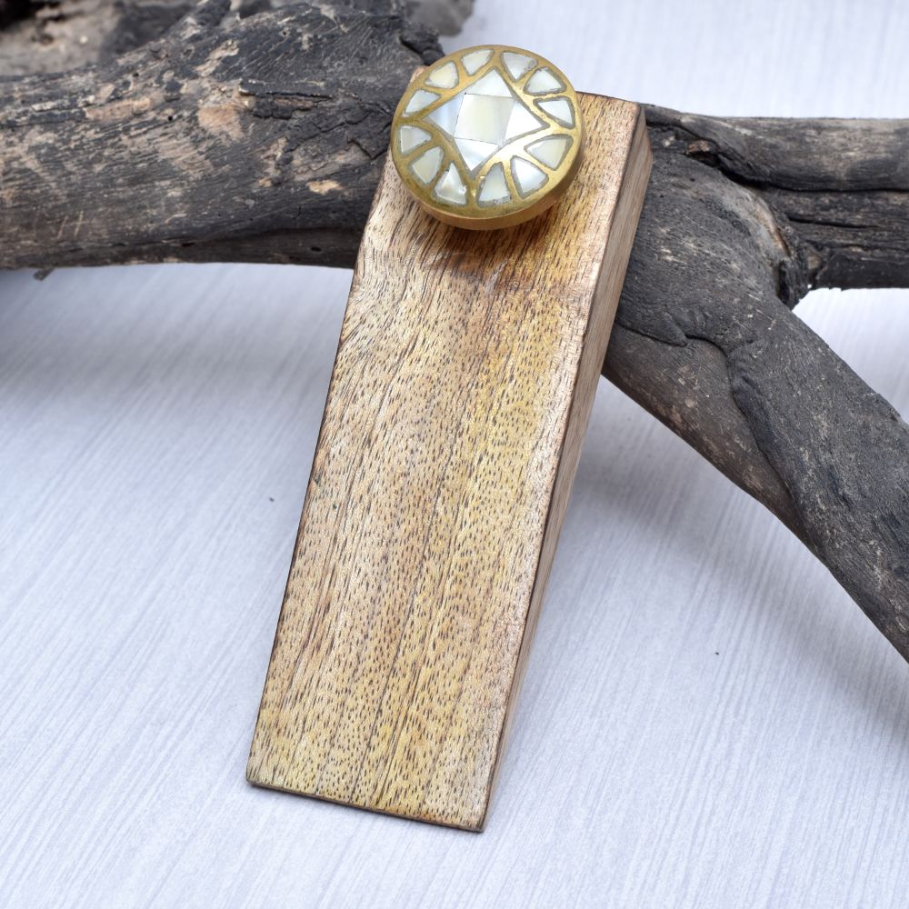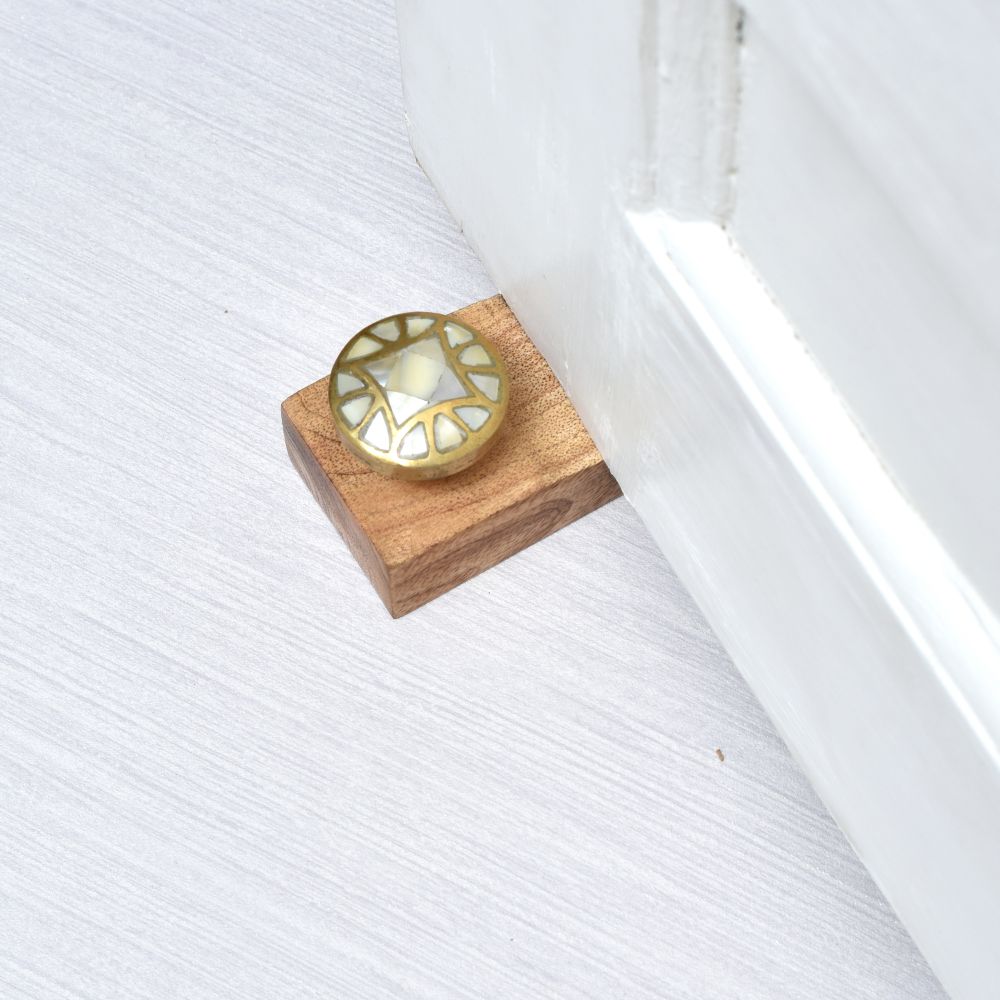 Meticulously crafted, this door stopper showcases a premium ceramic top with an elegant white and golden motif that enhances any environment. The solid wooden base guarantees stability, providing exceptional durability and reliability while also acting as a decorative feature in your home or office.