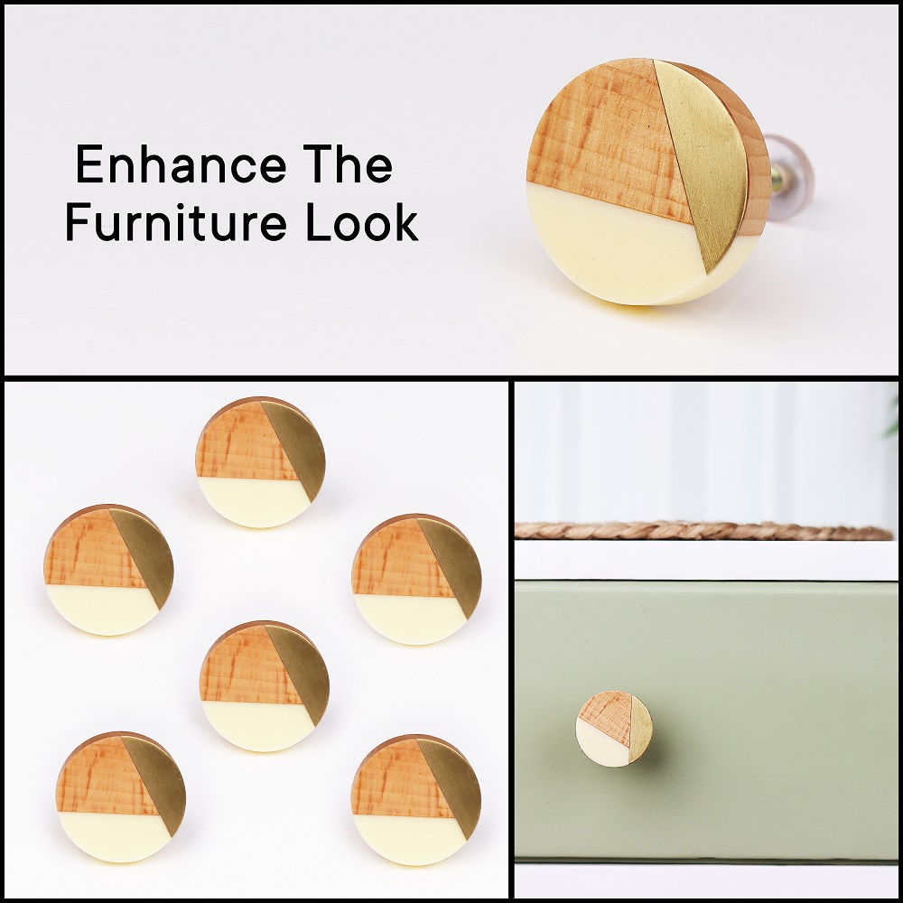 The Round Wooden and Resin Knob is made for easy installation with standard screws (included). In just a few minutes, you can refresh the look of your furniture with these beautiful, stylish knobs.