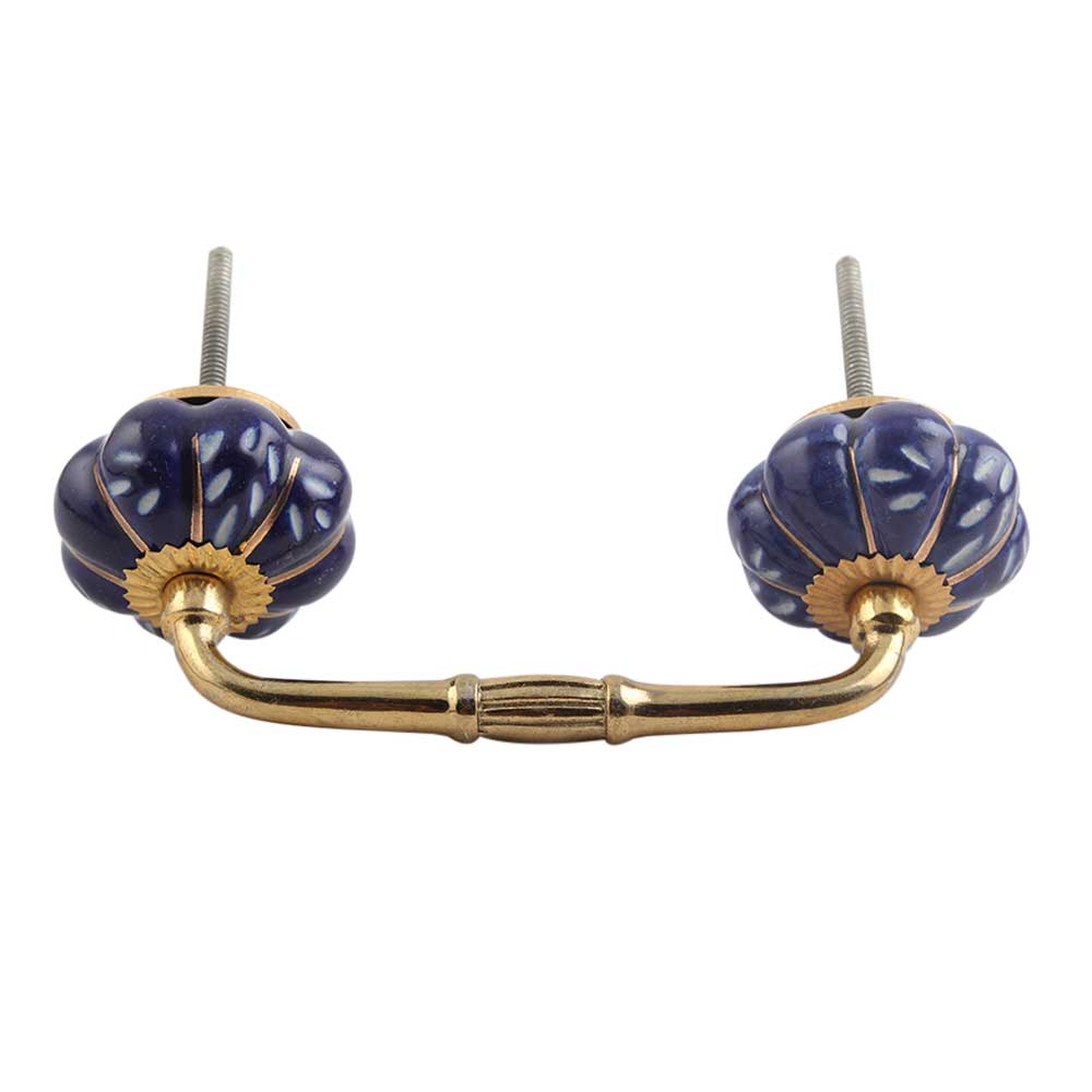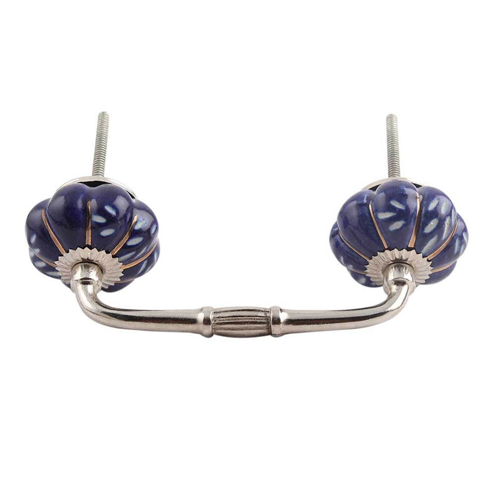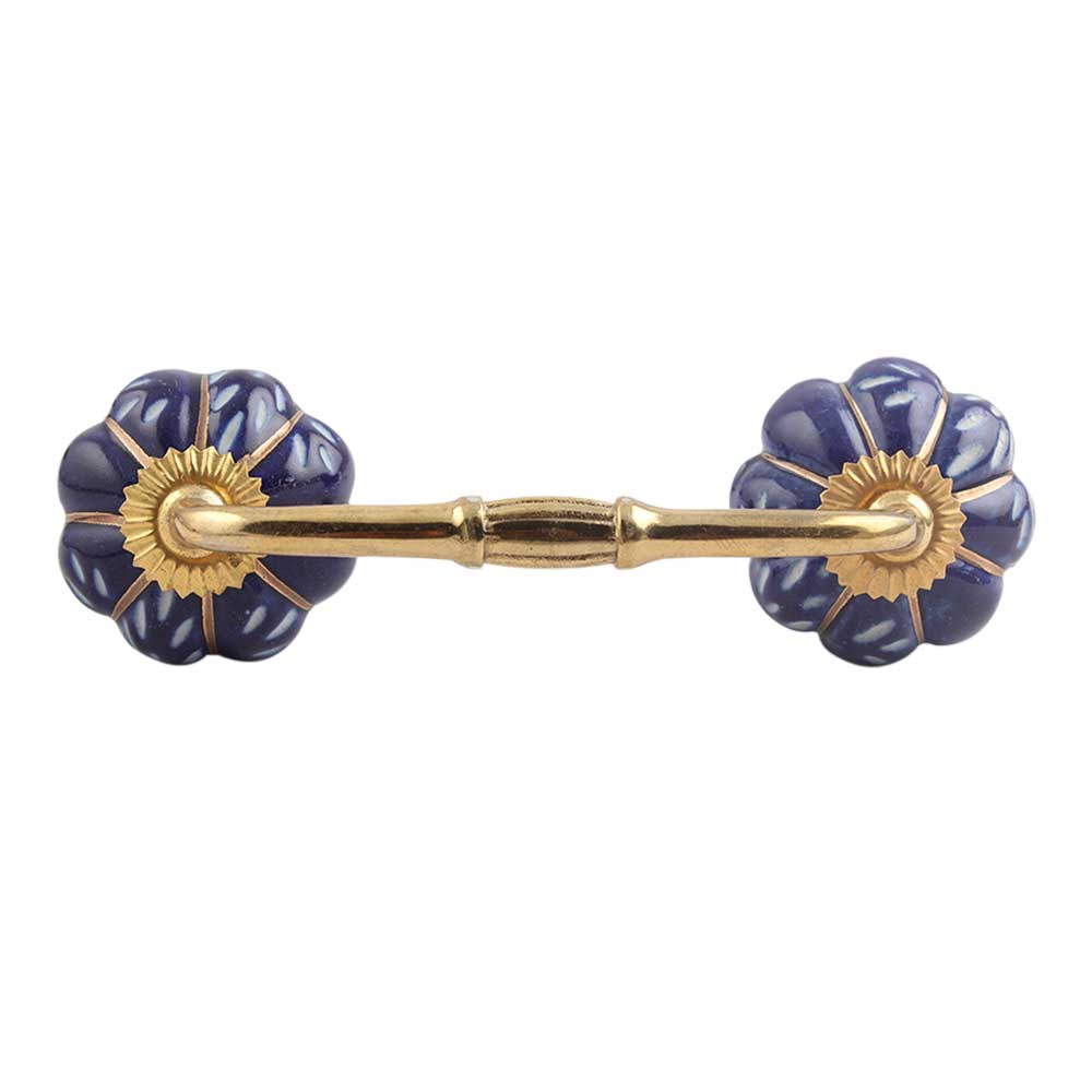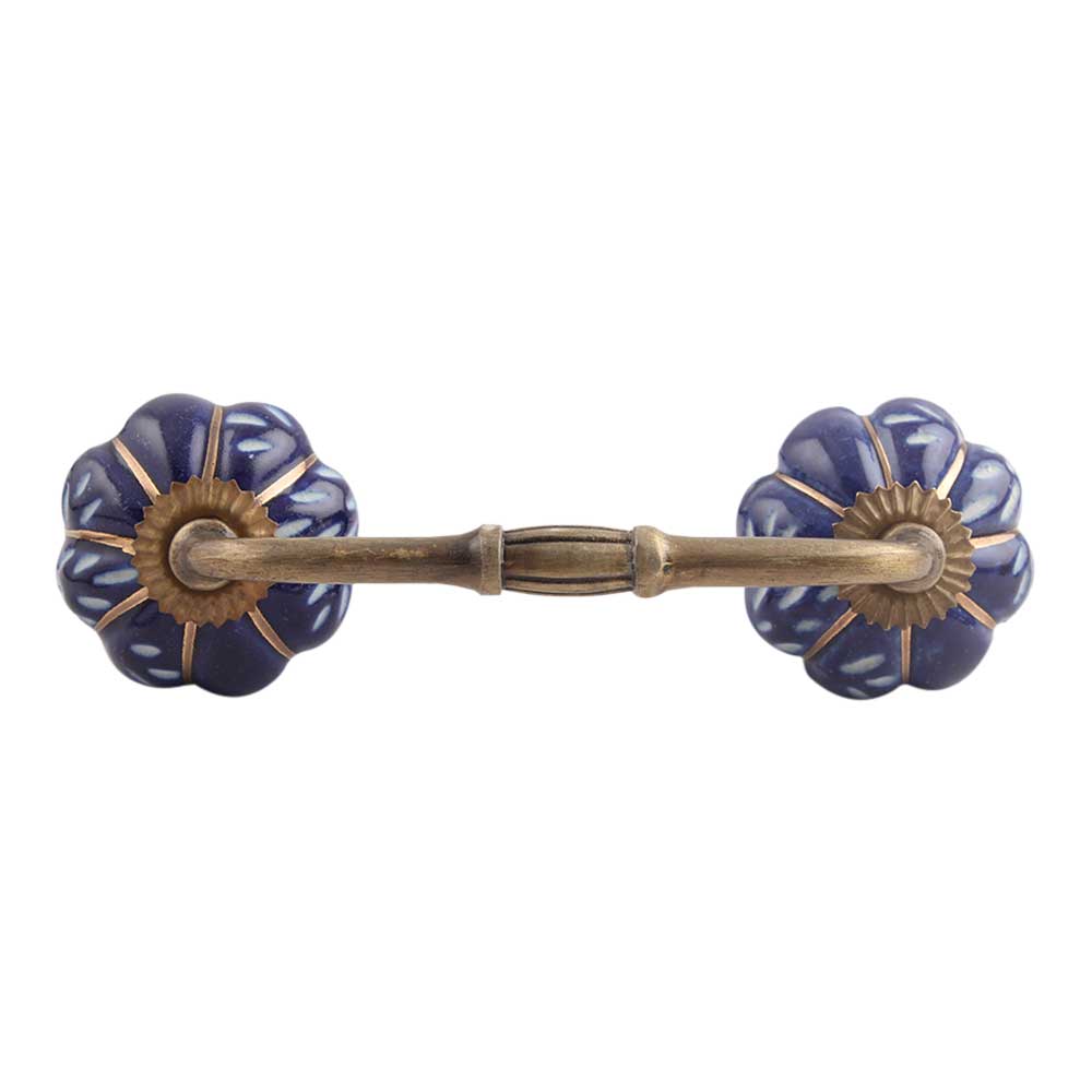 Royal Blue Engraved Ceramic Bridge Handle. Ideal for Drawer, Dresser, Cabinet, Wardrobe, Cupboard and Almirah.