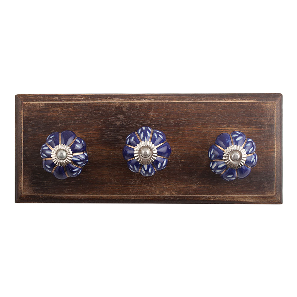 Royal Blue Engraved Melon Ceramic Wooden Hook. A Perfect Complement to the Soft Tone of the Wood are these White Traditional Hat &Amp; Coat Hook Made of Genuine Porcelain and Brass. It can be use to Hang Jewellery, Leashes, Towels, Scarves, Light Weight Sweaters, Caps Etc.
