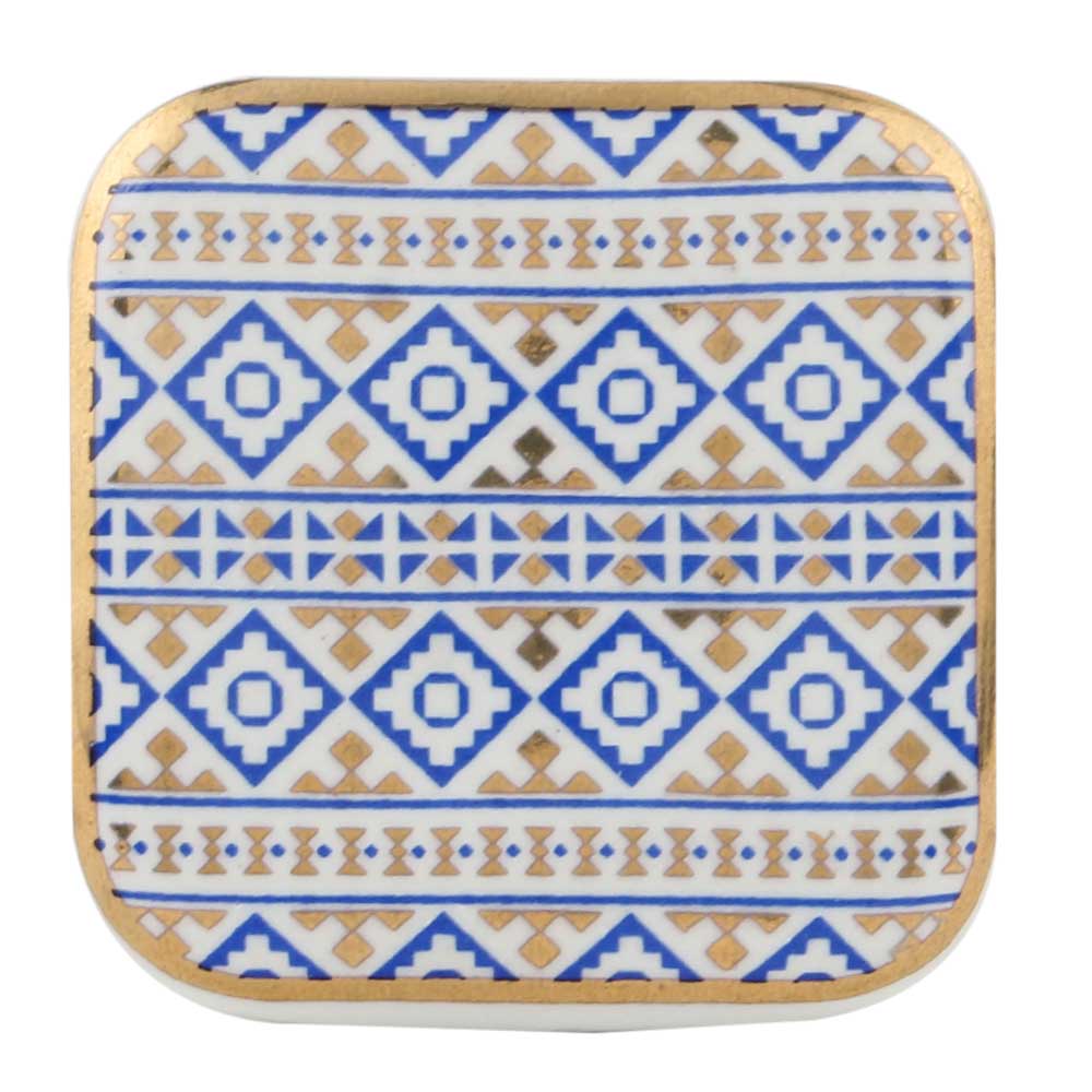 The Royal Blue Golden Design Square Ceramic Dresser Knob is a sophisticated piece that effortlessly combines bold color with intricate detailing. With its rich royal blue base and golden accents, this knob brings a touch of opulence and refinement to your furniture. The square shape offers a modern edge, while the colors and design remain timeless, making it a versatile option for a variety of interior styles.