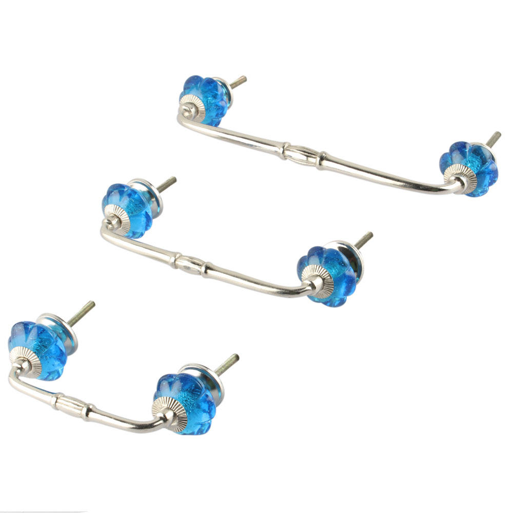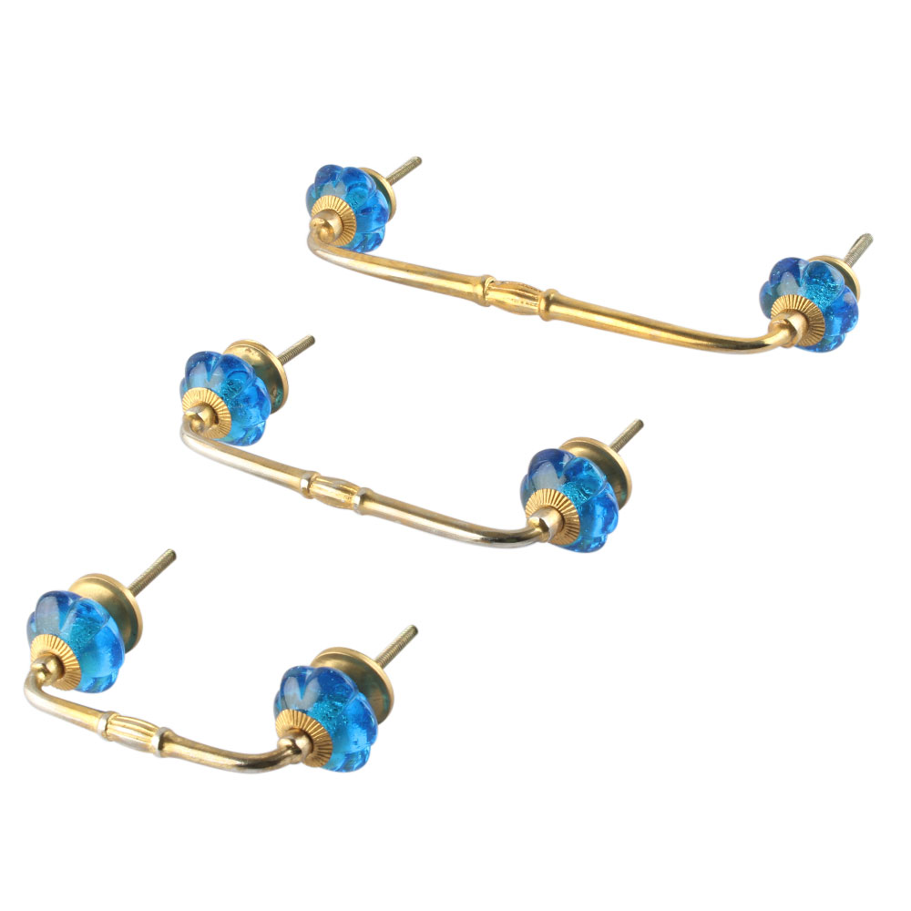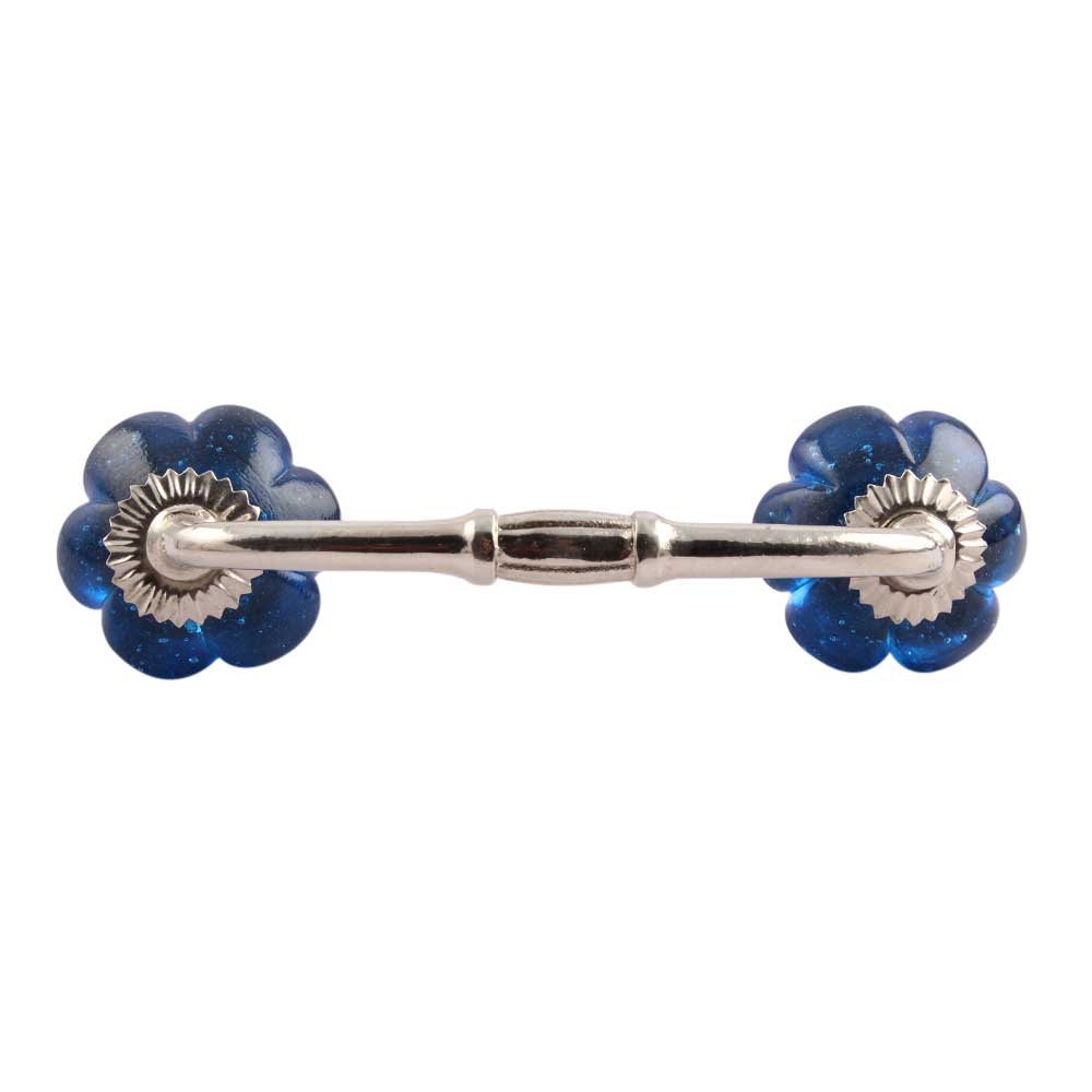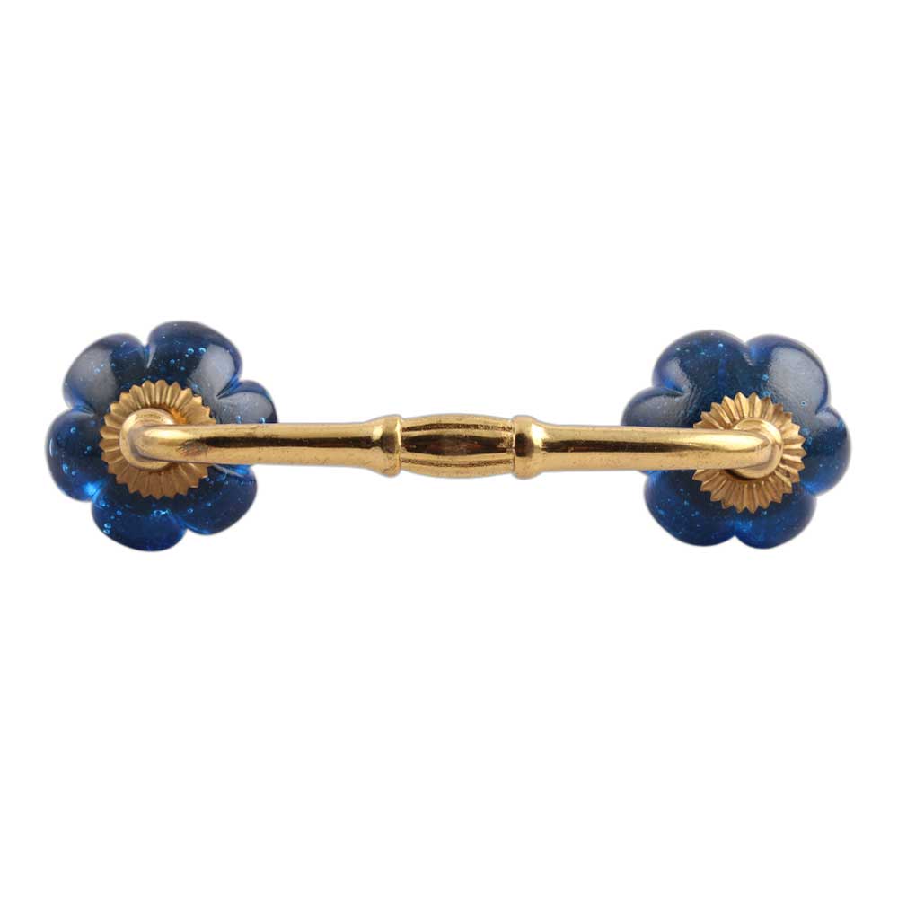 Royal Blue Melon Glass Bridge Handle. Ideal for Drawer, Dresser, Cabinet, Wardrobe, Cupboard and Almirah.