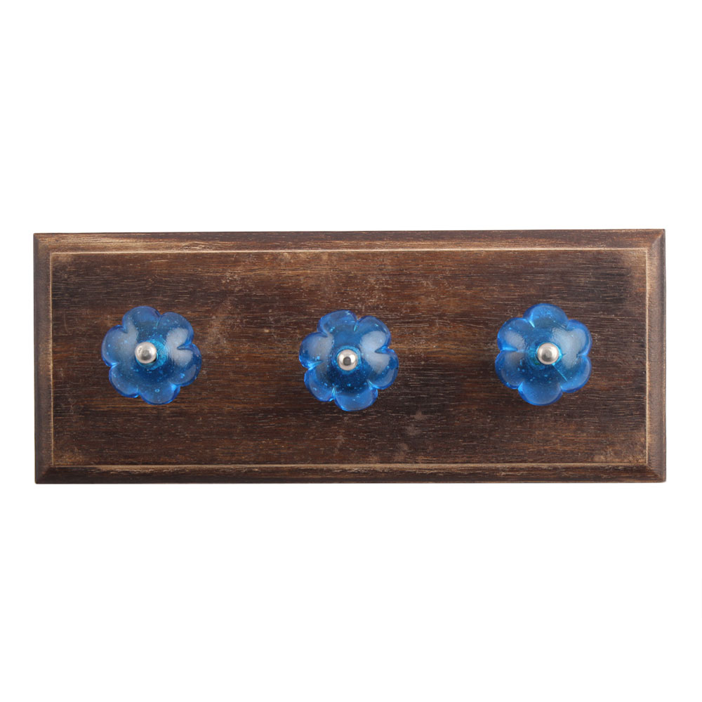 Royal Blue Melon Glass Wooden Hook. A Perfect Complement to the Soft Tone of the Wood are these White Traditional Hat & Coat Hook Made of Genuine Porcelain and Brass. It can be use to Hang Jewellery, Leashes, Towels, Scarves, Light Weight Sweaters, Caps Etc.