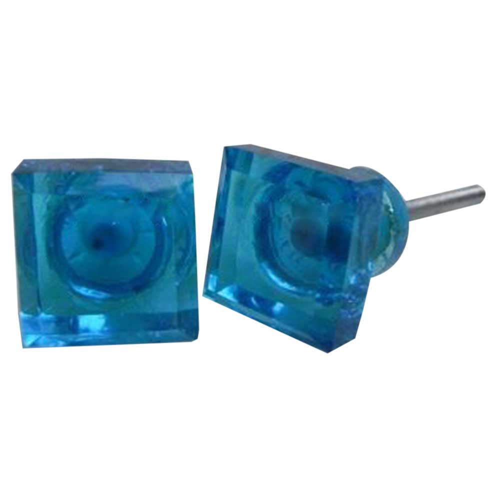 Royal Blue Small Square Glass Knobs, Small. Ideal for Drawer, Dresser, Cabinet, Wardrobe, Cupboard and almirah