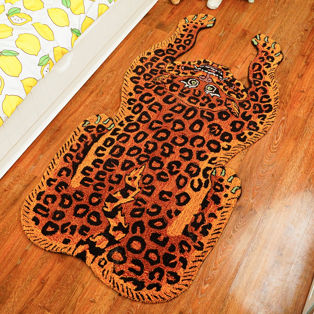 A fun rug in the shape of an animal is called Rug Leopard . This warm, plush, and hand-tufted rug is thick. The ideal carpet for a child's room. This hand-tufted rug in the contemporary style was skillfully created with premium wool by master rug craftsmen. This rug has a cotton backing and was woven in India using only wool. Place this sophisticated carpet in your living room and bedroom, and prepare to receive many praises from your visitors.