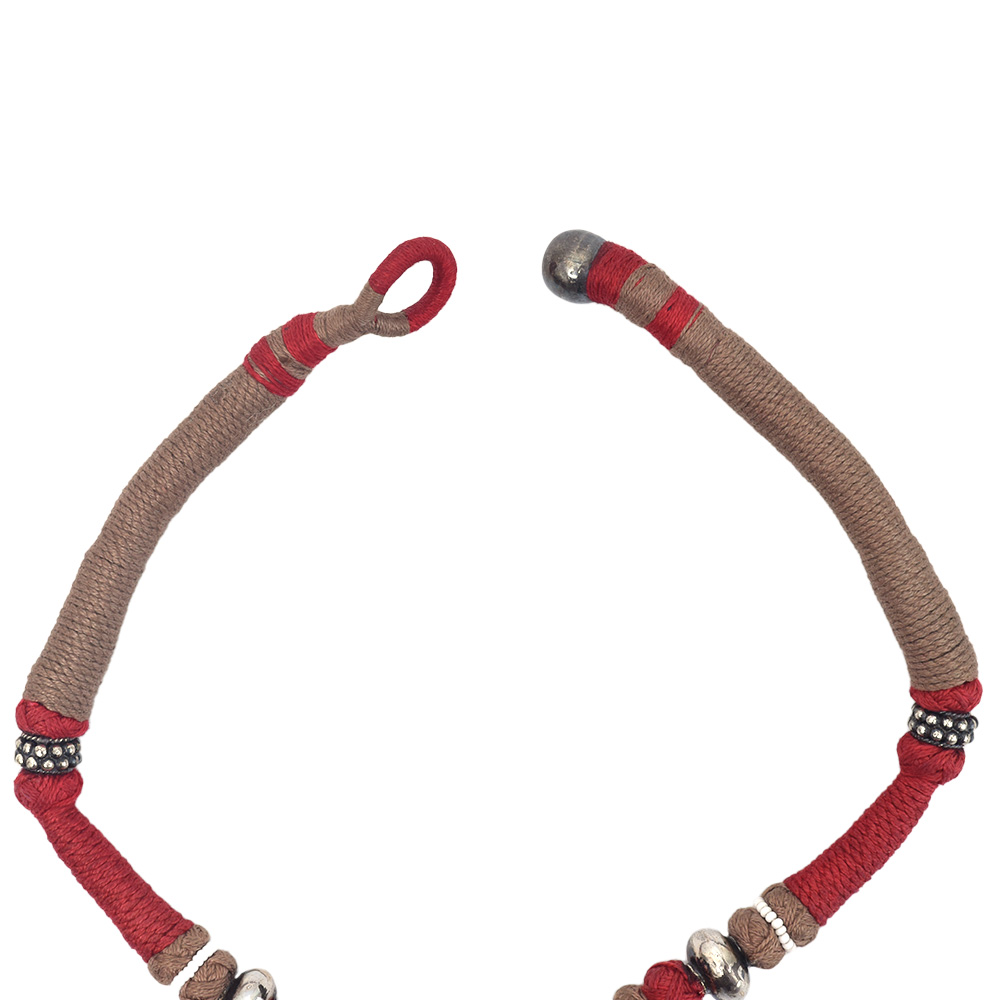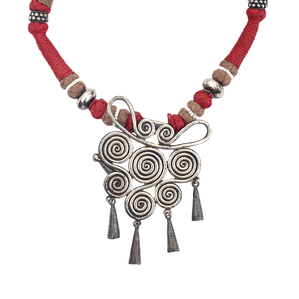 Jute jewelry that is handmade, traditional, and elegant, straight from the tribal artisans. The maroon-colored beaded neckpiece with the circle jute pendant gives the worn outfit a radiant appearance. The lovely jute necklace adds a creative touch to both Indian and Western attire. Girls and women of all ages would do well to choose this. This lovely set enhances your appearance with a hint of natural beauty. Jute, a natural vegetable fiber frequently used in textiles like twine and burlap, is used to make jute string necklaces. Necklaces made of jute string can be created in a variety of designs and embellished with beads or other elements.