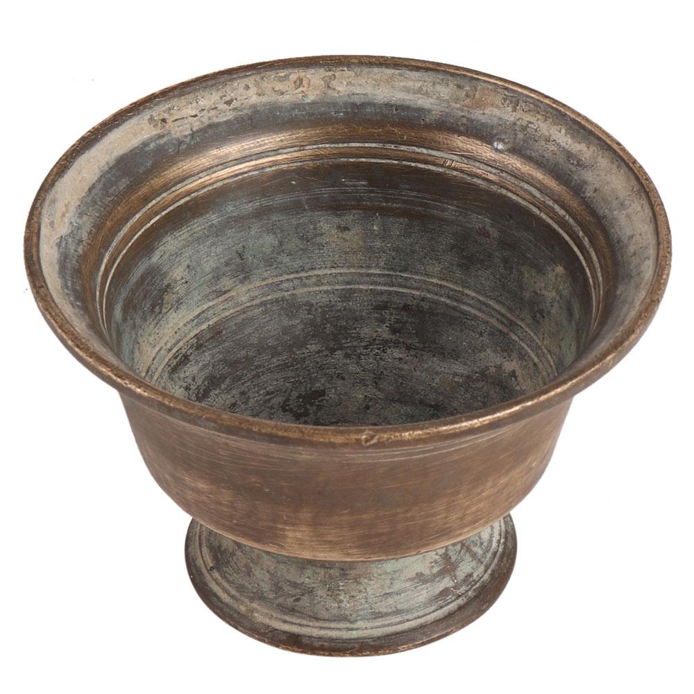 Local artisans in India use traditional tools and equipment to create this brass flower pot with a round base and stand. Hang flowers and planters from it for your patio, porch, or balcony. It can be used as an incense burner, a bar counter decoration, or a gift for loved ones on Diwali, Christmas, New Year's, and housewarming.