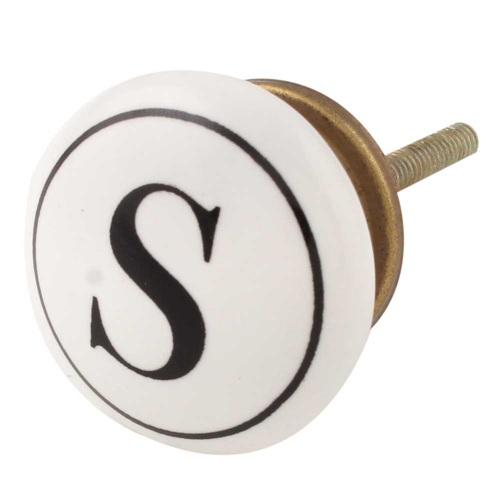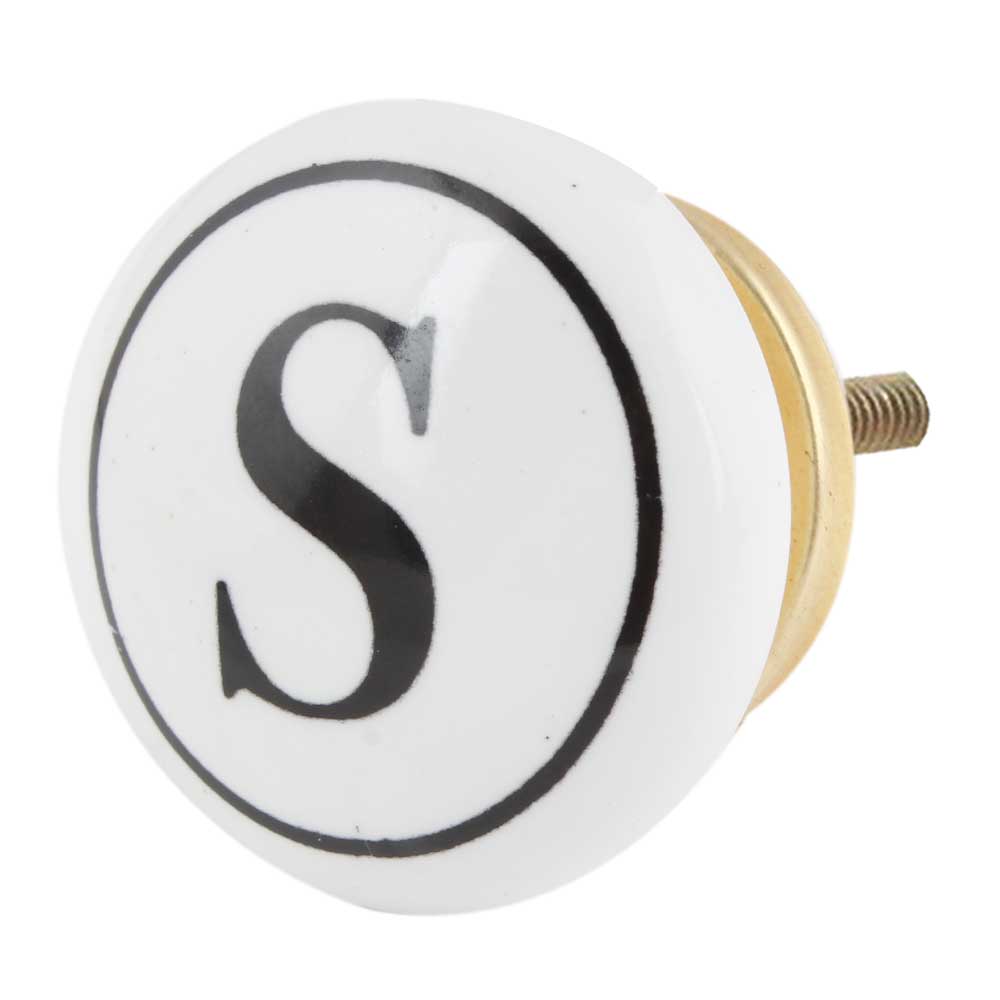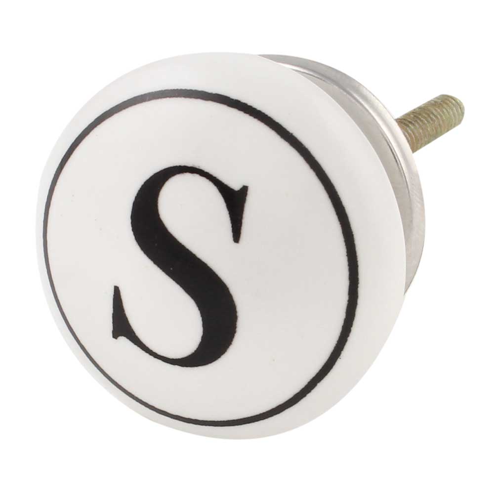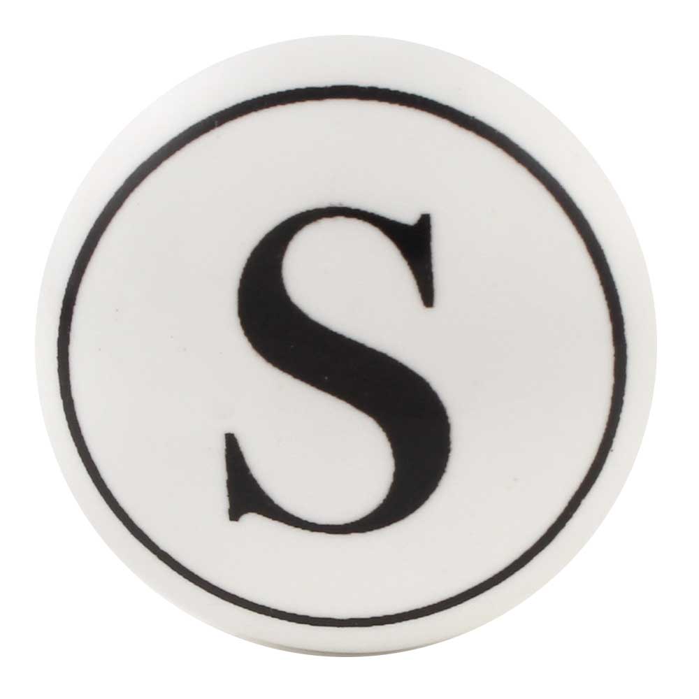 The combination of the sharp black and crisp white tones, along with the prominent engraving of the letter “S,” makes this knob an eye-catching detail for your furniture. Whether you are personalizing a space or adding an elegant initial to a room, this knob is sure to make a statement.