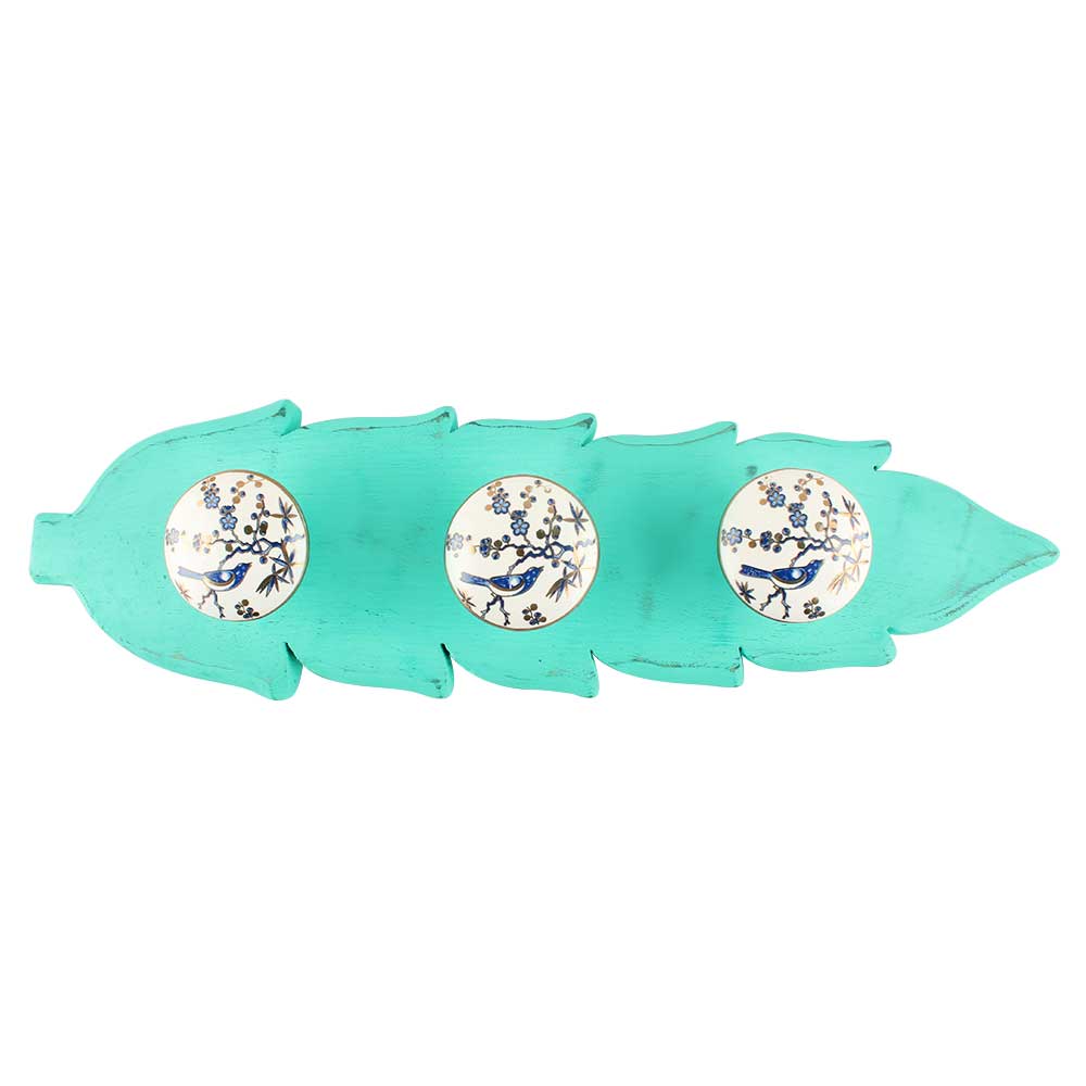 Sage Green And Blue Bird Golden Berry Ceramic Wooden Hook. A Perfect Complement to the Soft Tone of the Wood are these White Traditional Hat and Coat Hook Made of Genuine Porcelain. It can be use to Hang Jewellery, Leashes, Towels, Scarves, Light Weight Sweaters, Caps etc.