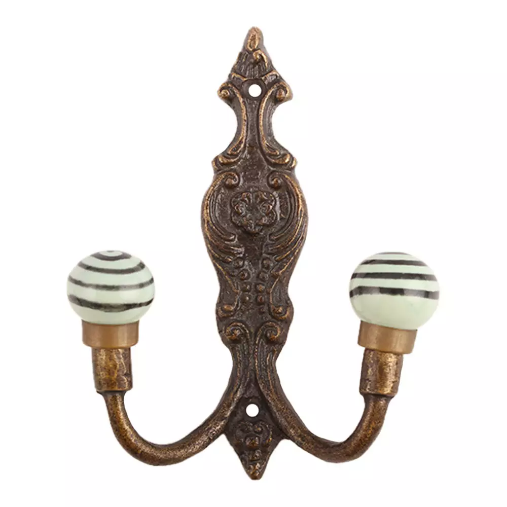Sage Green Black Strip Ceramic Iron Hook. When Put on Wall or Cabinet It Gives A Sturdy Look. This Hook is Strong Enough to Hold Your Cloths, Keys, Tea Cups, Coffee Mugs, Hand Towels Etc