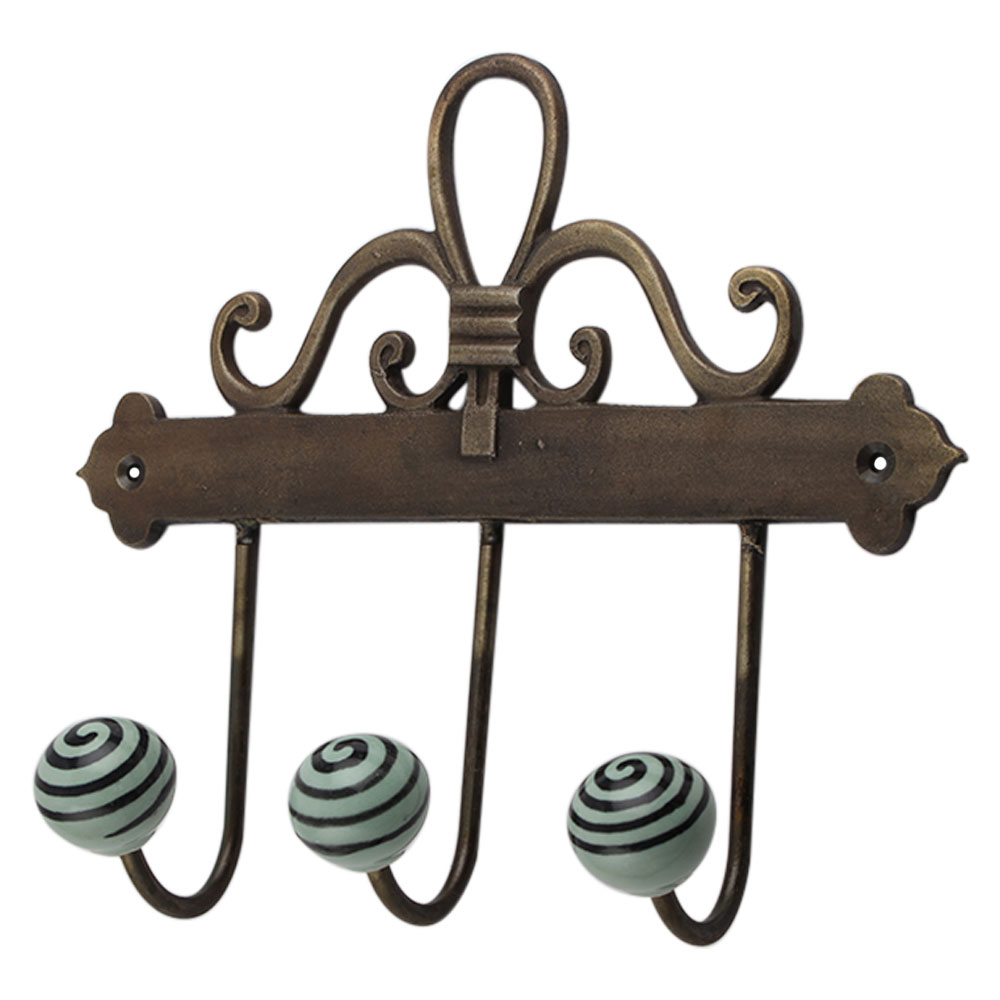 Sage Green Black Strip Ceramic Iron Hook. A Perfect Complement to the Soft Tone of the Wood are these White Traditional Hat & Coat Hook Made of Genuine Porcelain and Brass. It can be use to Hang Jewellery, Leashes, Towels, Scarves, Light Weight Sweaters, Caps Etc.