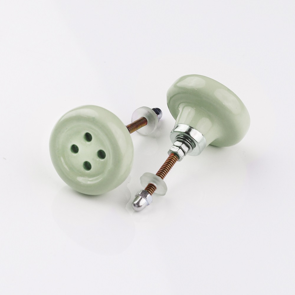 Enhance your home decor with the Sage Green Ceramic Button Knob. Its timeless design and earthy color make it a versatile and elegant choice, offering a refined, calming touch to your furniture and creating a peaceful atmosphere in any room.