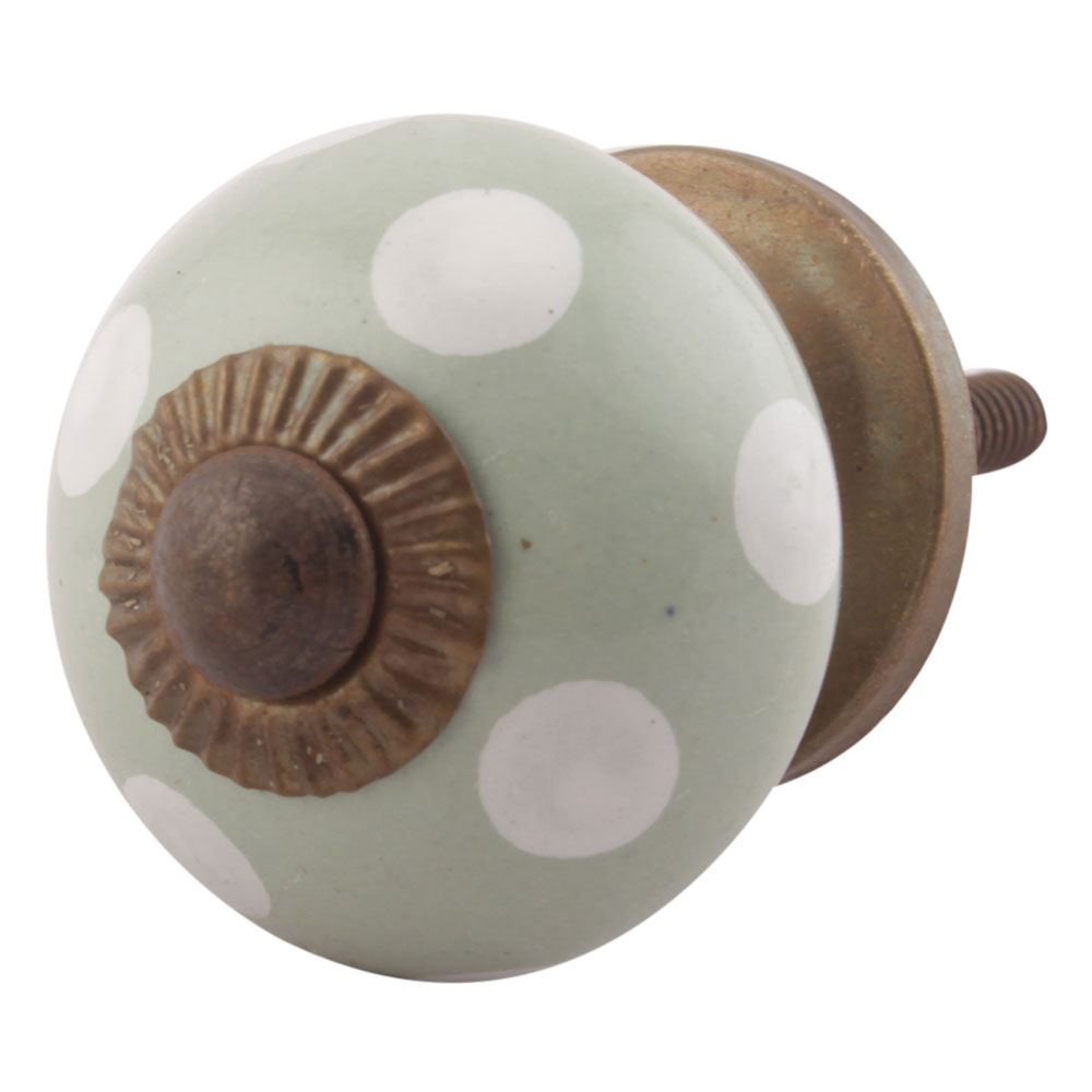 Sage Green Dotted Small Ceramic Cabinet Knobs Online. Ideal for Drawer, Dresser, Cabinet, Wardrobe, Cupboard and Almirah.